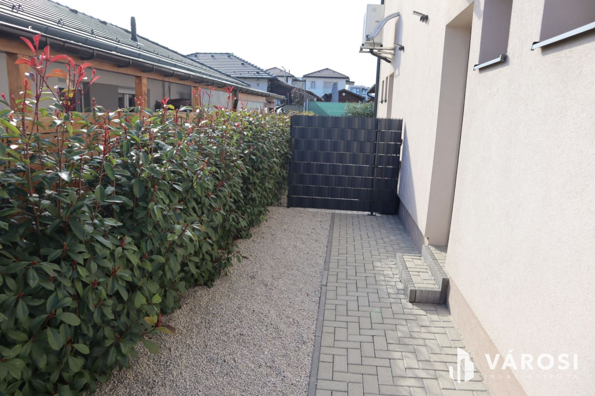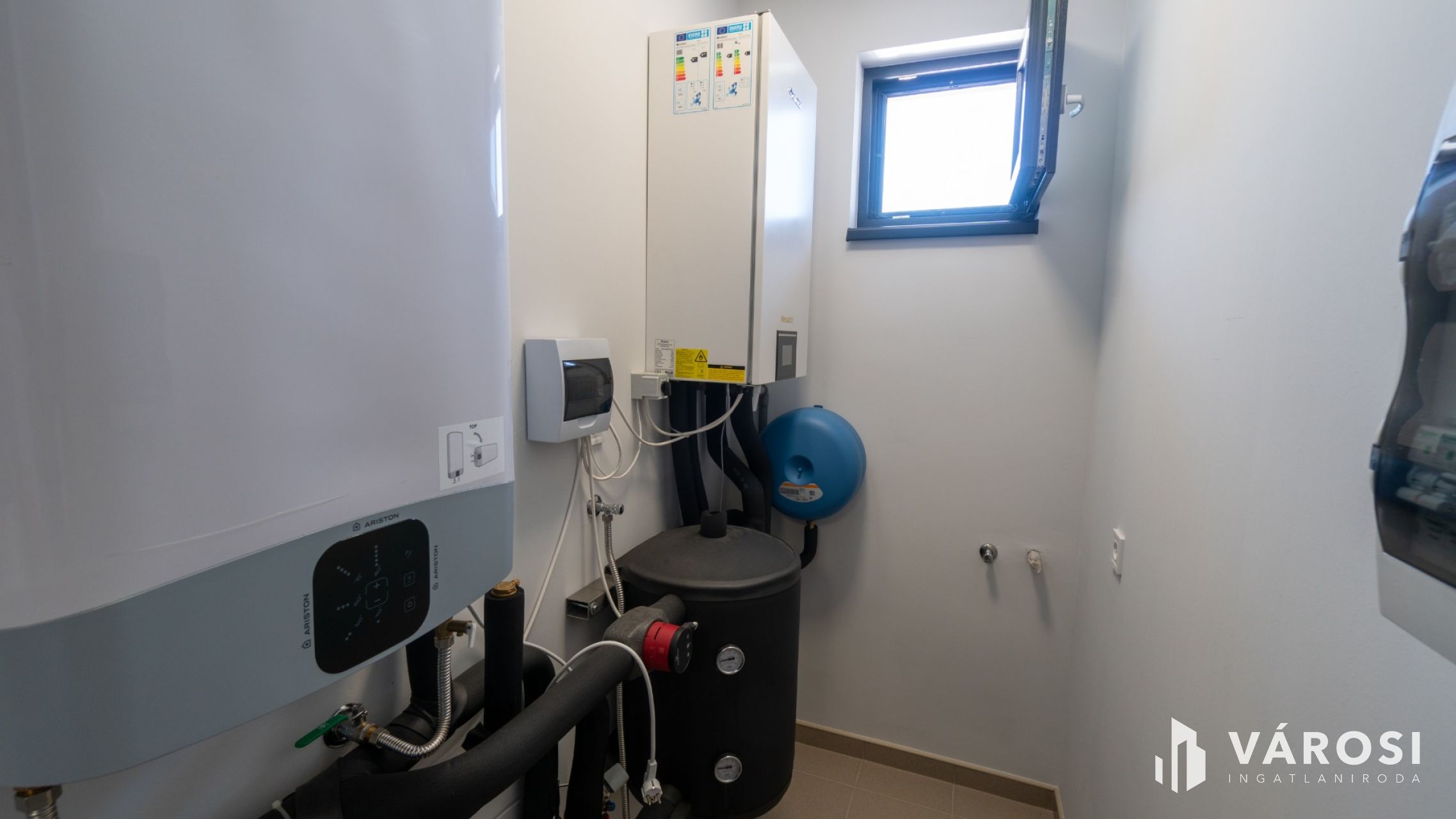 A modern életvitel kényelmét számos prémium minőségű anyag és felszerelés biztosítja, többek között hőszivattyú (padlófűtéses hőleadással), klíma, külső hőszigetelés és automata öntözőrendszer. A hőszigetelt 3 rétegű nyílászárókon redőnyök és szúnyoghálók fokozzák a további kényelmet és nyújtanak védelmet. A csendes utcában elhelyezkedő ház kiváló közlekedési lehetőségekkel rendelkezik, így könnyedén elérhetőek a város fontosabb pontjai. A zöld övezetben található ingatlan kitűnő választás mindazok számára, akik nyugalomra és természetközeli életre vágynak.