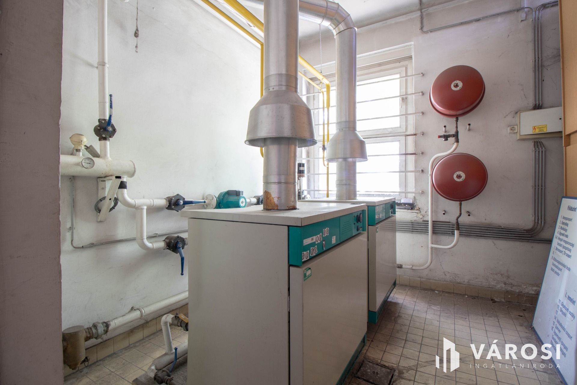 A fűtésről gázkazánok és radiátor hőleadók gondoskodnak, az áruházban már padlófűtés került kiépítésre.