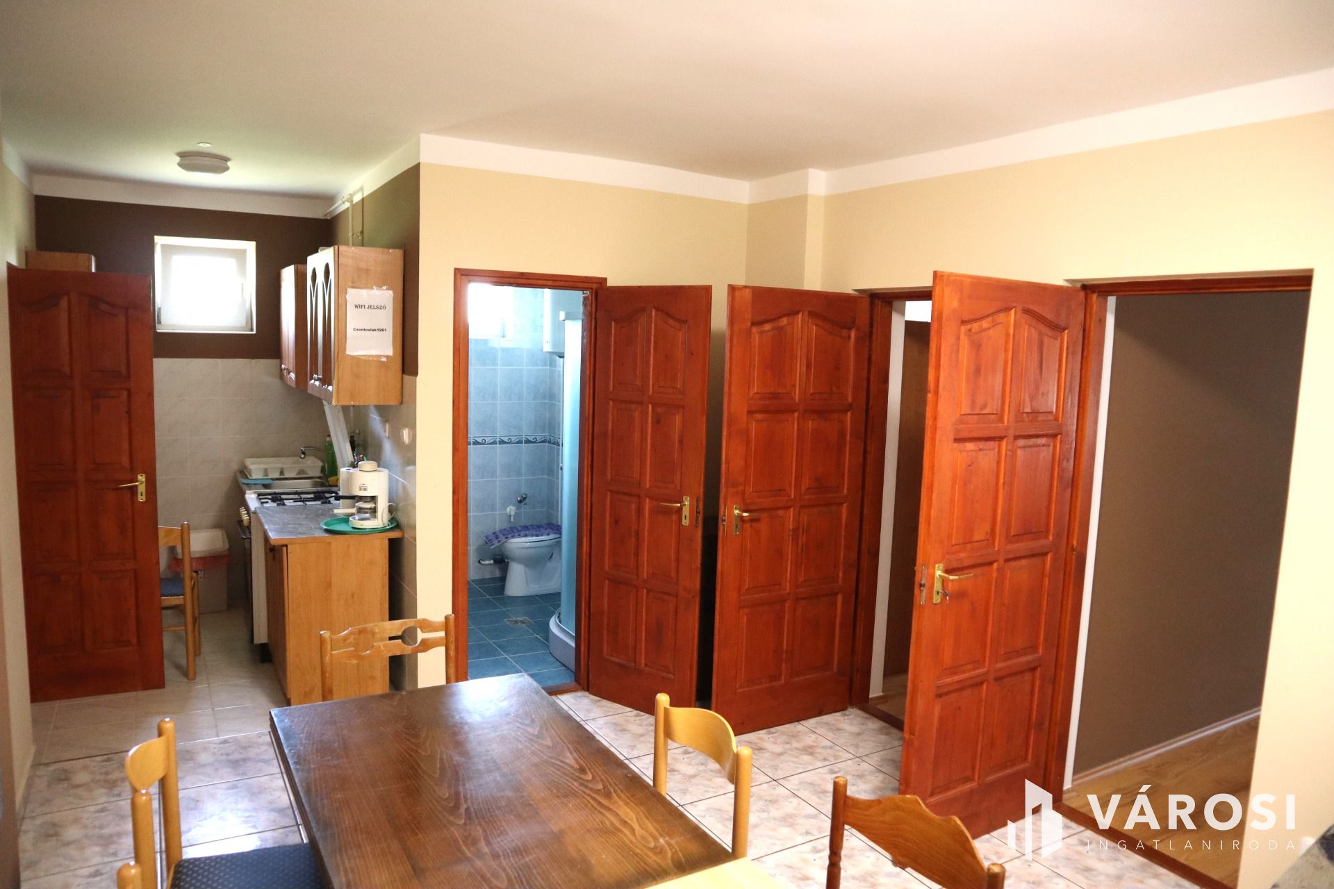 A 2004-ben épült két szintes, szigetelt tégla építésű épület hasznos alapterülete 400 m², amely egy 800 m²-es önálló parkosított telken helyezkedik el. Az ingatlan kiváló állapotban van, a földszinten két 100 m²-es apartman (egyenként 2 hálószoba, és egy nagy nappali) az emelten pedig szintén két 100 m²-es 3 szobás tágas apartman várja a pihenni váró vendégeket. Minden egységhez tartozik egy konyha, és egy zuhanyzós fürdőszoba is.