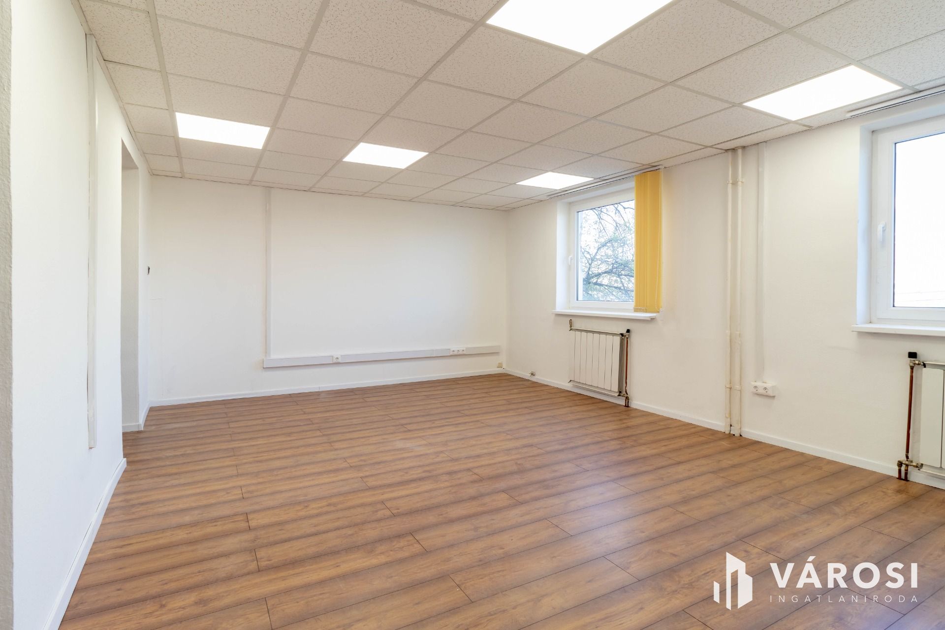 A két egymásból nyíló helyiségből álló iroda az irodaház 2. emeletén helyezkedik el. A helyiségek laminált padlóval burkoltak.