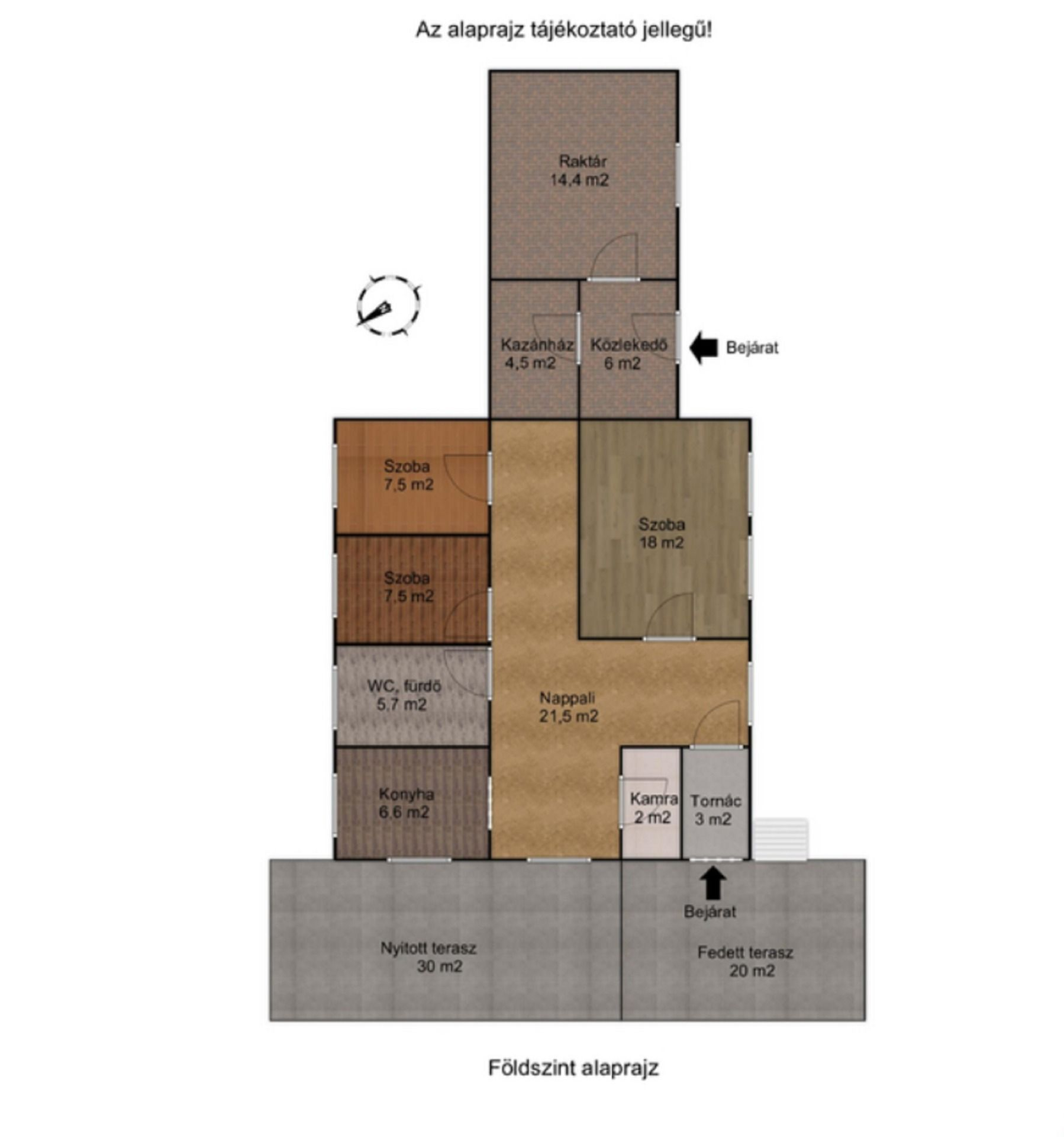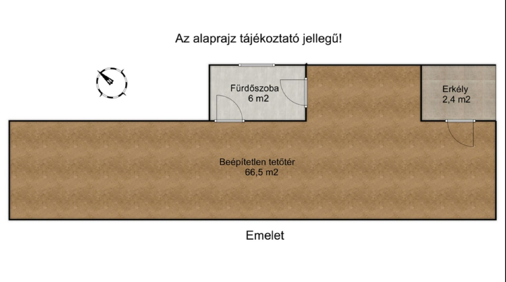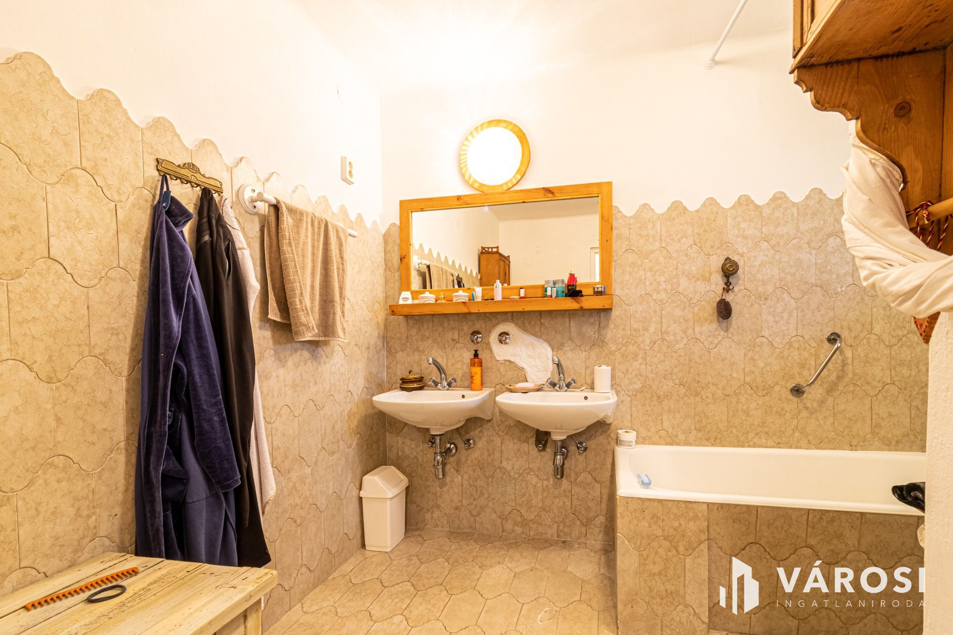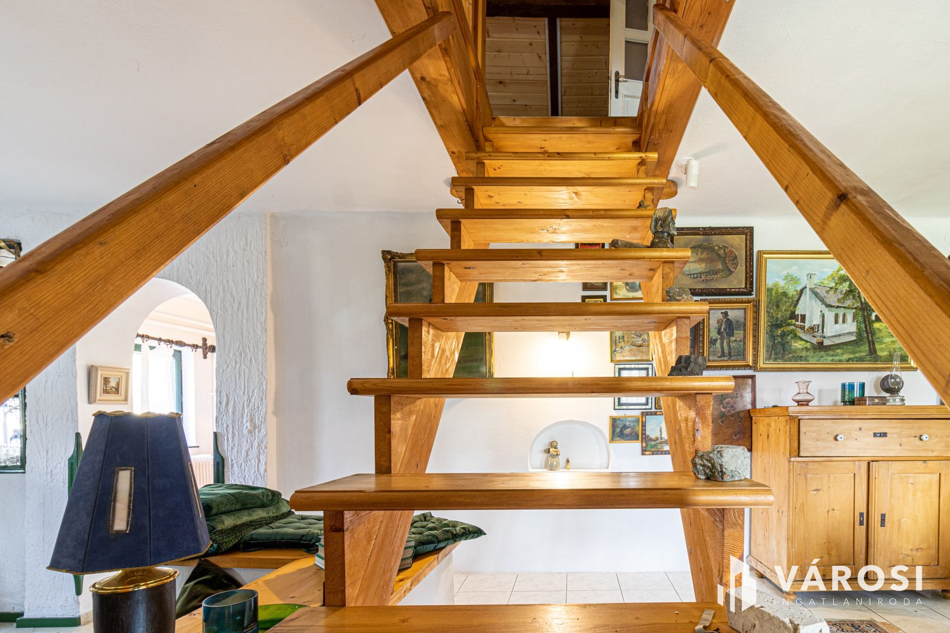 A lakóház két szintes, az alsó rész teljesen kész, a tetőtérben csak a fürdőszoba lett kialakítva, a többi terület beépíthető.
