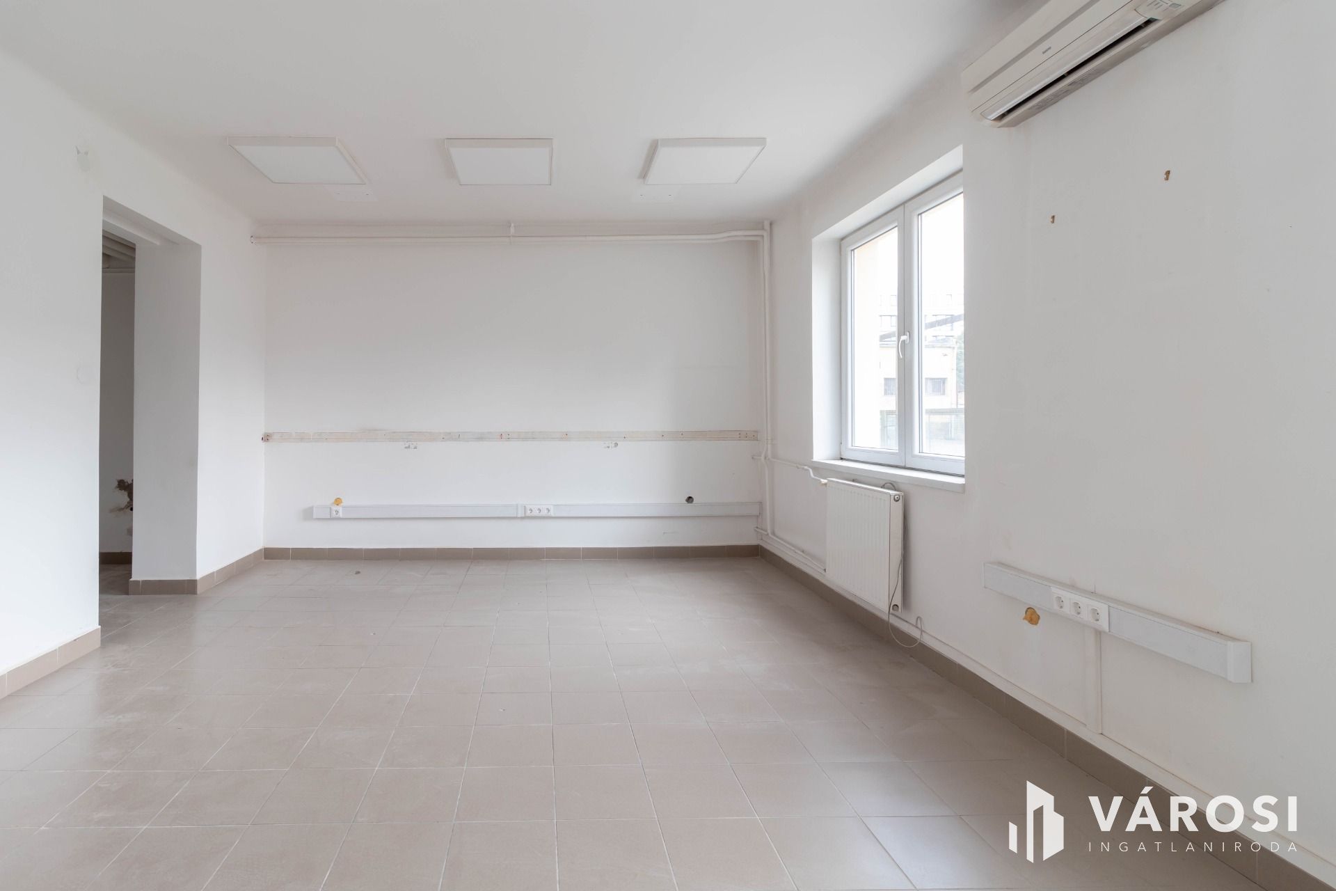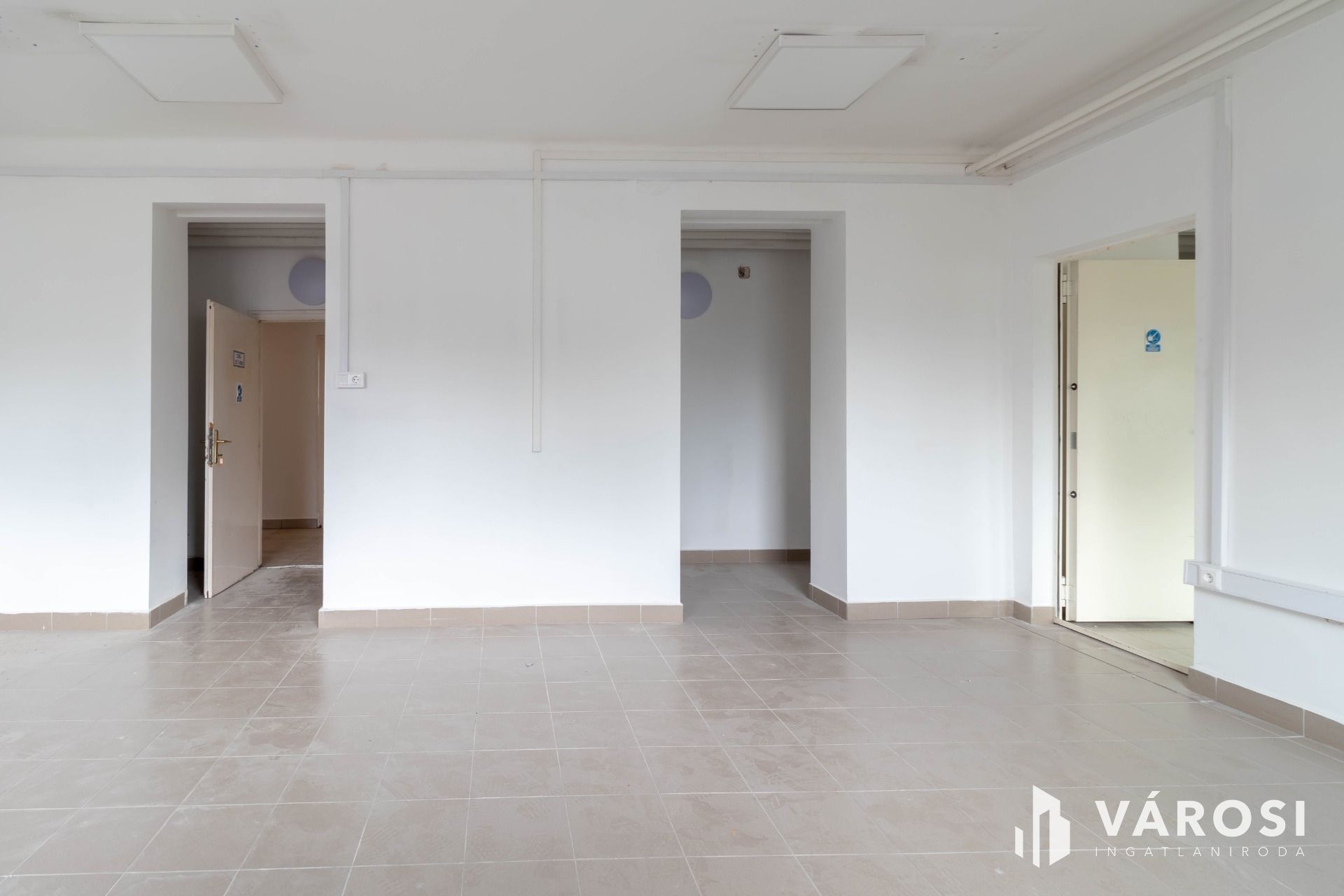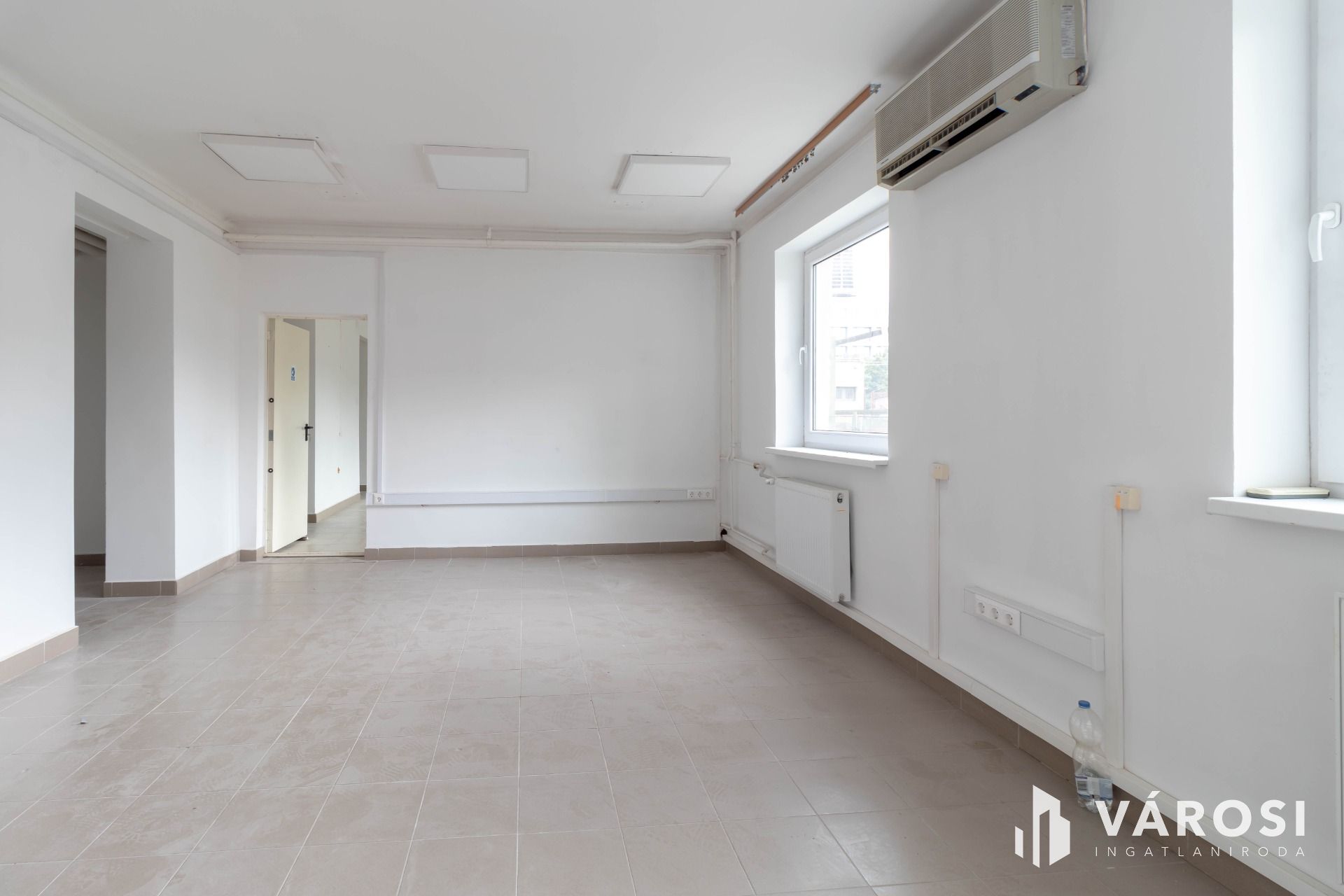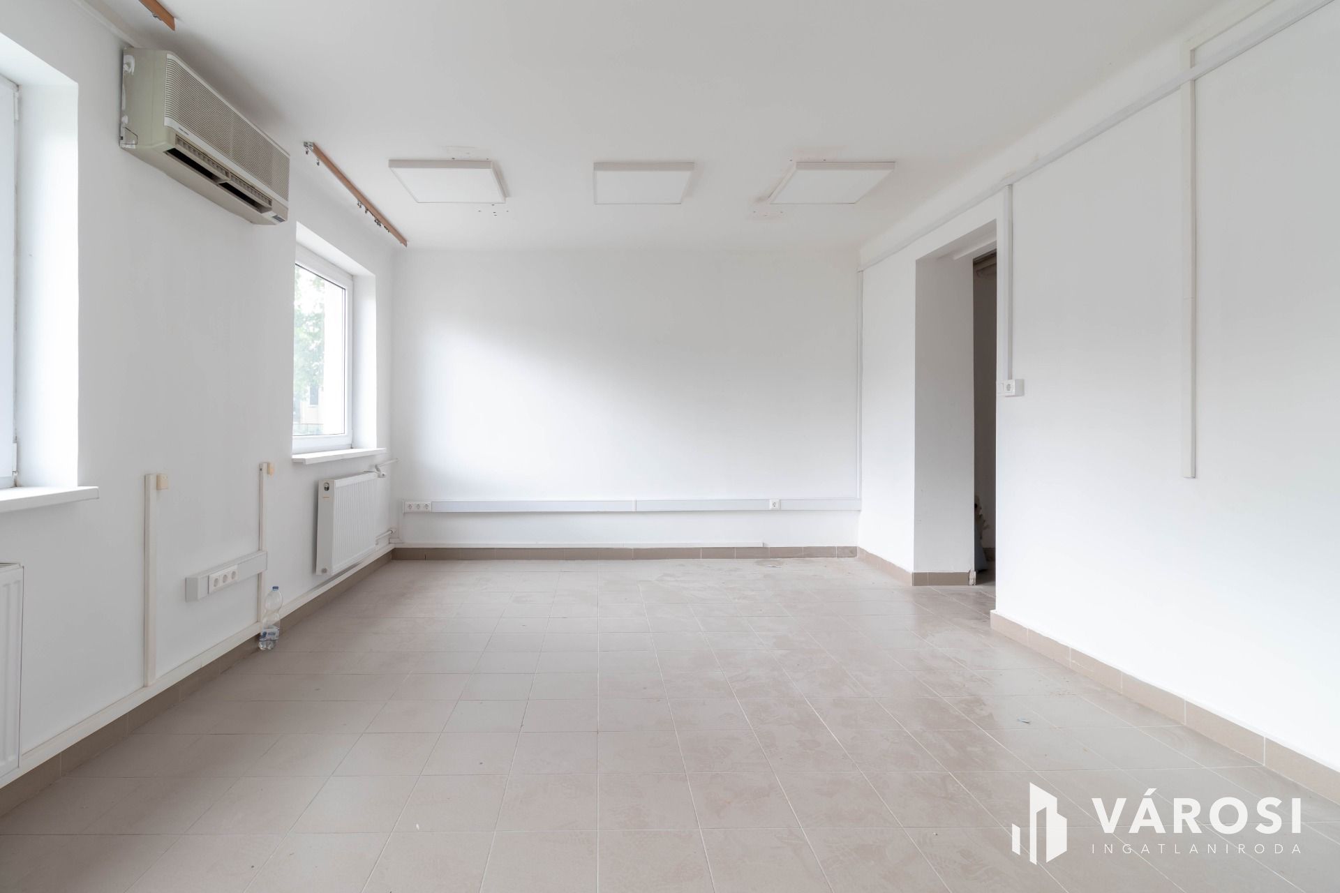 A két, egymásból nyíló, egyenként 25 m2-es helyiségből álló iroda az irodaház földszintjén helyezkedik el. A járólapos padlóburkolat biztosítja a könnyű tisztán tarthatóságot.
