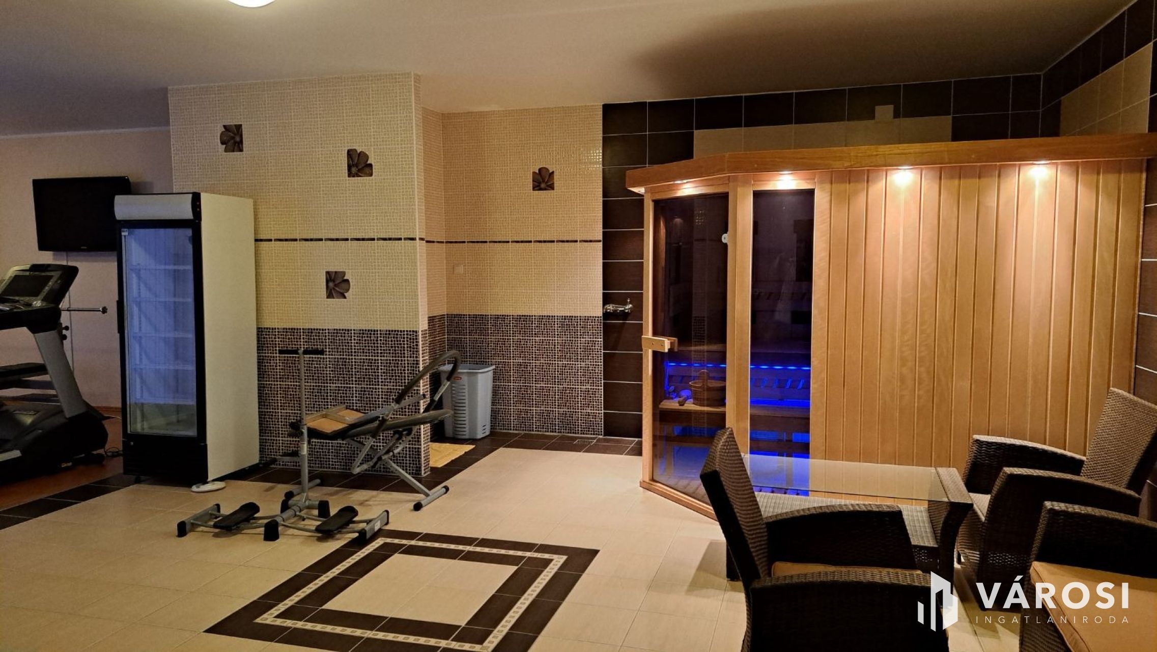 - Tágas és világos belső terek: amerikai stílusú konyha gránit munkalappal, nappali+étkező+konyha egy légtérben 5 szoba - 3 hálószoba, vendégszoba és fitness - wellness részleg, ahol edzőterem, 6 személyes finn és infraszauna, zuhanyzó