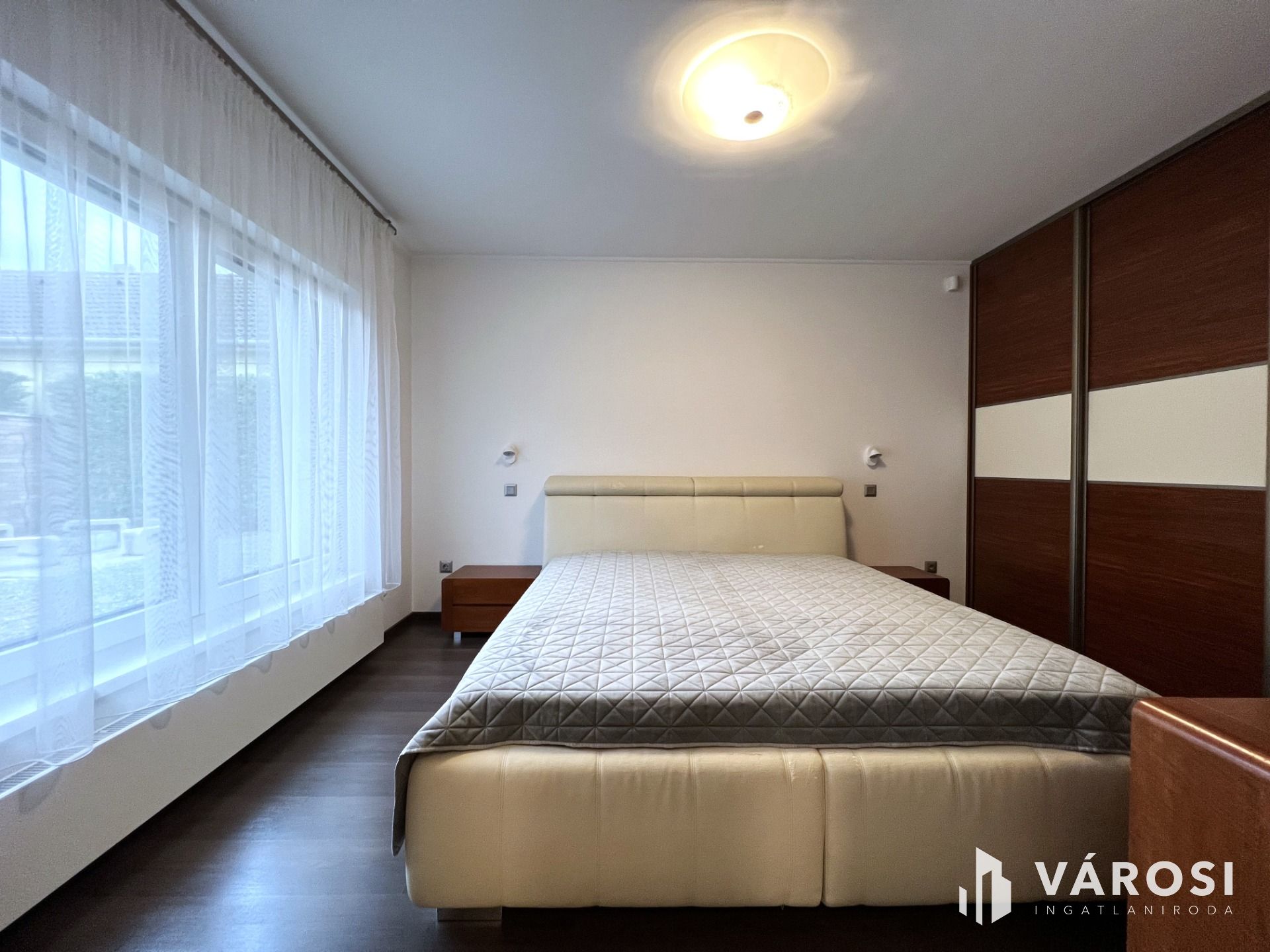 A földszinten található egy minden igényt kielégítő amerikai konyhás nappali, egy tágas kádas fürdőszoba wc-vel, gardrób, külön wc-bidé, közlekedő-mély pakolható gardrób szekrényekkel, továbbá egy világos modern hálószoba.