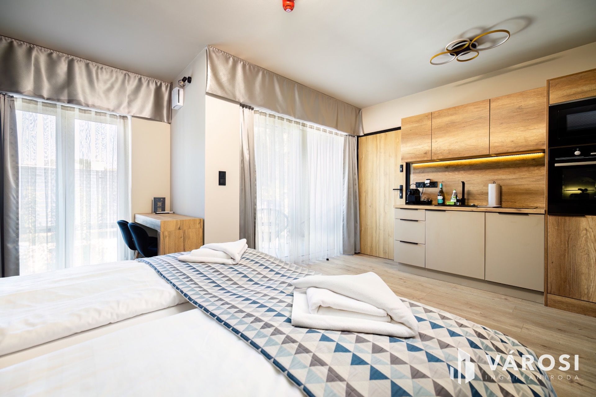 A mindössze 13 lakásos, 2023-ban átadott modern társasházban található ingatlan prémium minőségű bútorokkal berendezett, teljesen gépesített, azonnal használható – akár saját nyaralónak, akár kiadásra, befektetésnek is ideális választás.