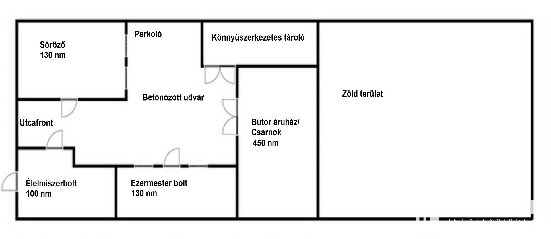 A söröző, valamint az élelmiszerbolt az utcafronton találhatóak, a söröző melegkonyhával is rendelkezik. Az élelmiszer boltot jelenleg bérlő üzemelteti, aki egy új tulajdonos esetén is szívesen folytatná a tevékenységet.