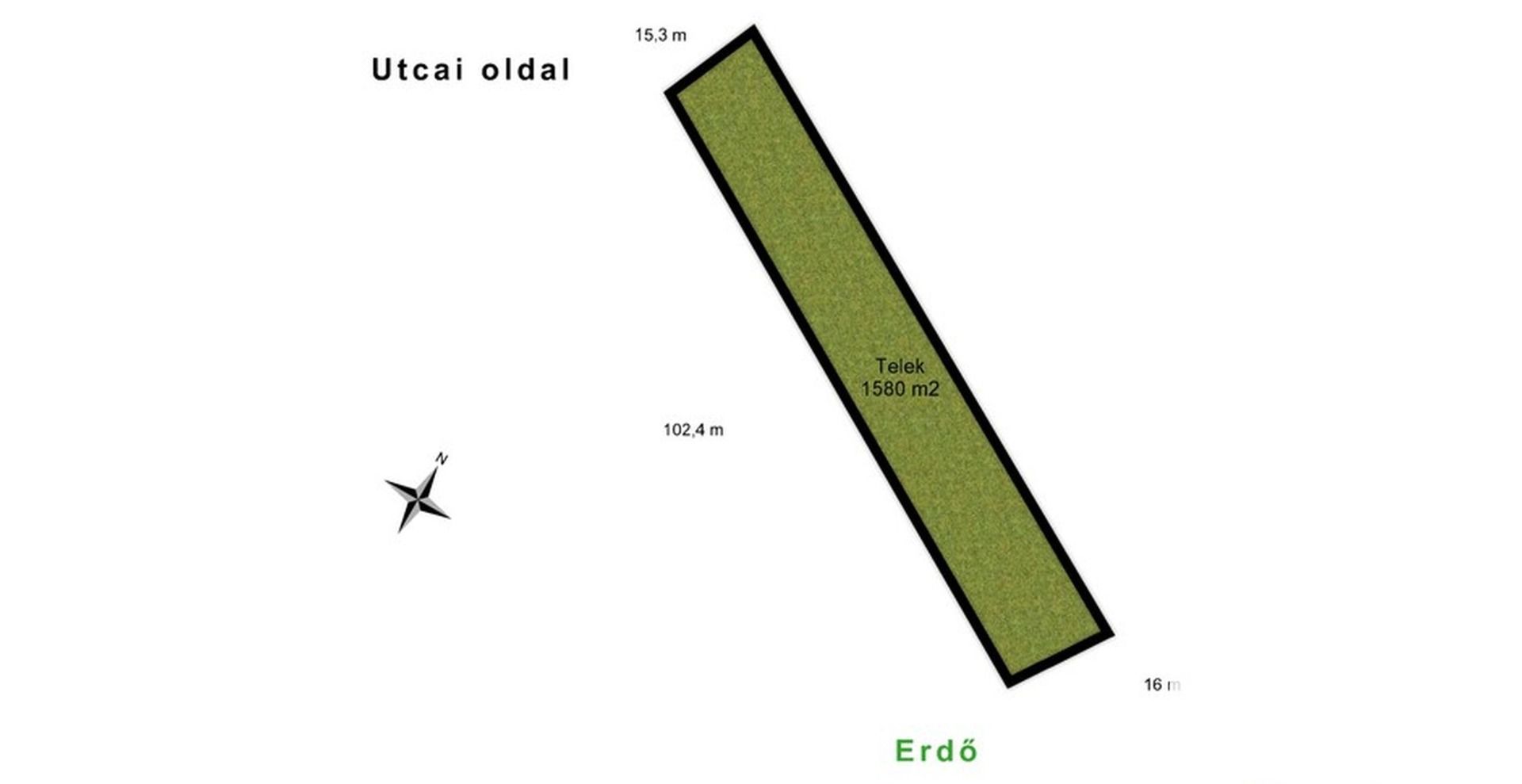 A telek téglalap alakú és az utcafronti résztől az ártéri erdőterület határáig tart.