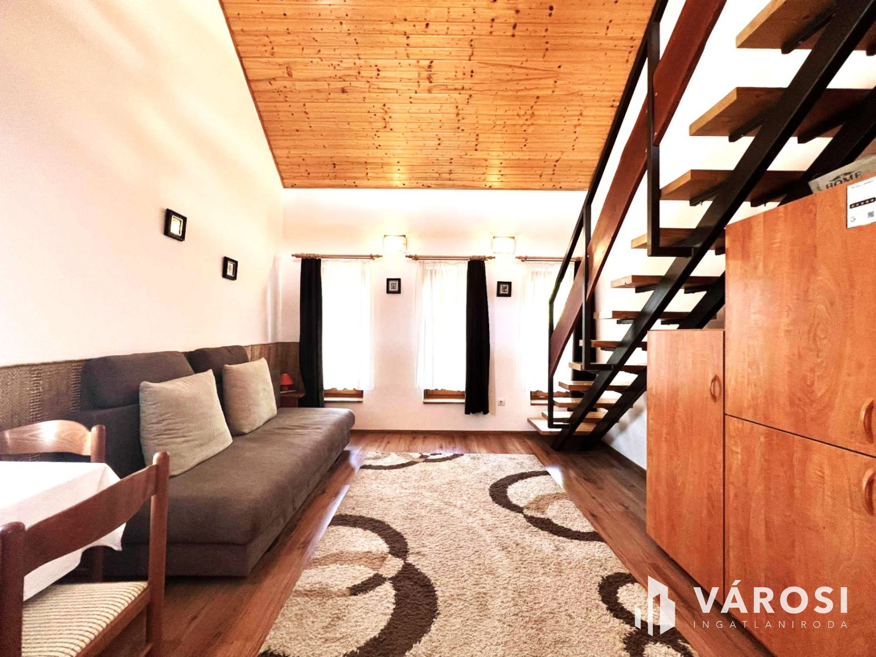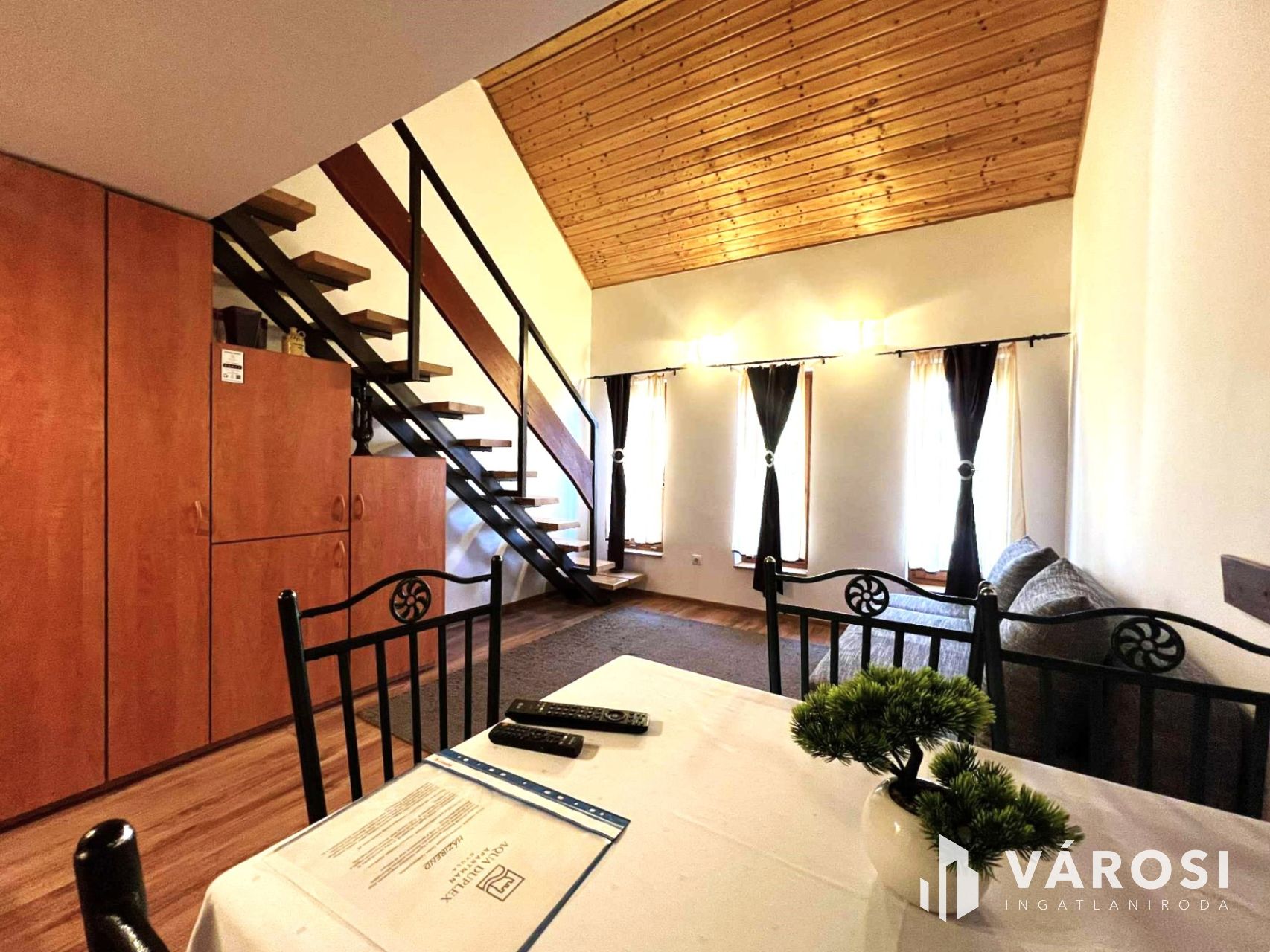 eladóvá vált egy négylakásos társasházi lakás, kétszer kétszintes, galériás ingatlana, berendezve, bútorozottan, minden kiegészítővel felszerelten.