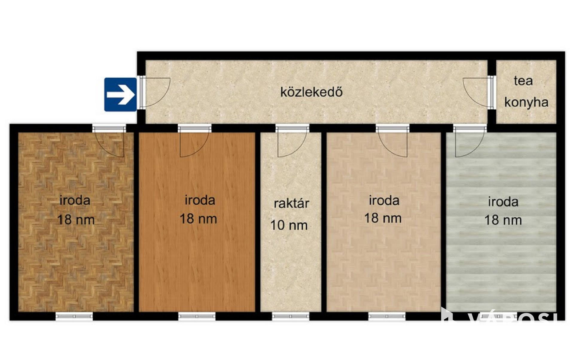 - 4 db. iroda teakonyha, közlekedő, és egy raktárhelyiség, ezekből adódik a teljes 104 nm.