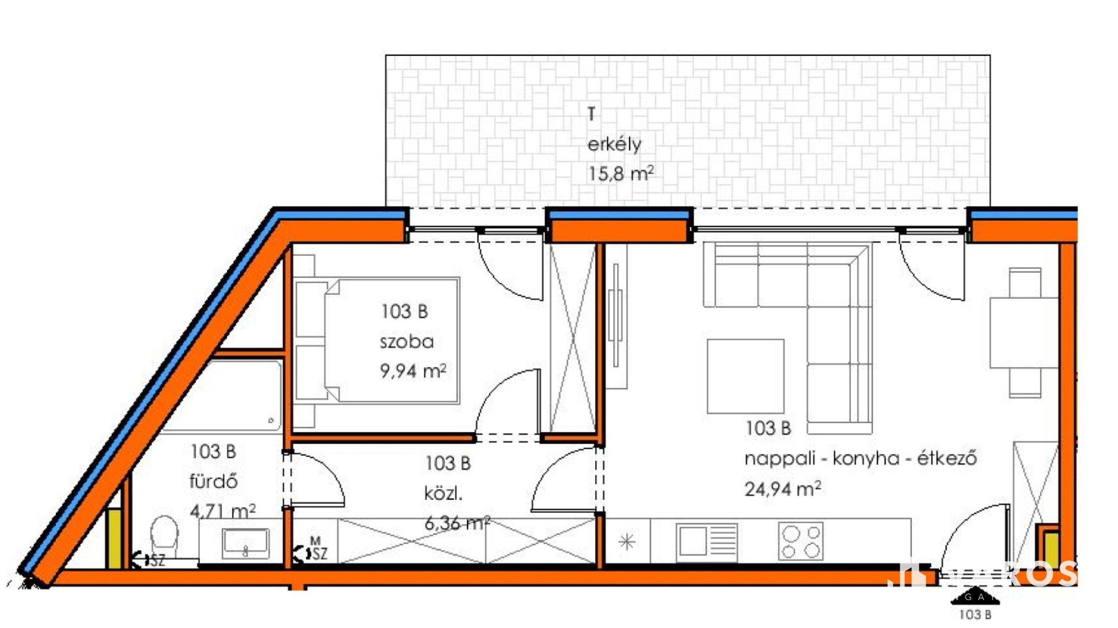 Szeged belváros, új építésű 4 szintes, liftes társas házban eladó 1. emeleti 53,85 négyzetméteres lakás 15,8 négyzetméteres terasszal, kulcsrakész állapotban. Az ingatlanhoz vásárolható önálló garázs vagy gépkocsibeálló a mélygarázsban kizárólagos használattal.