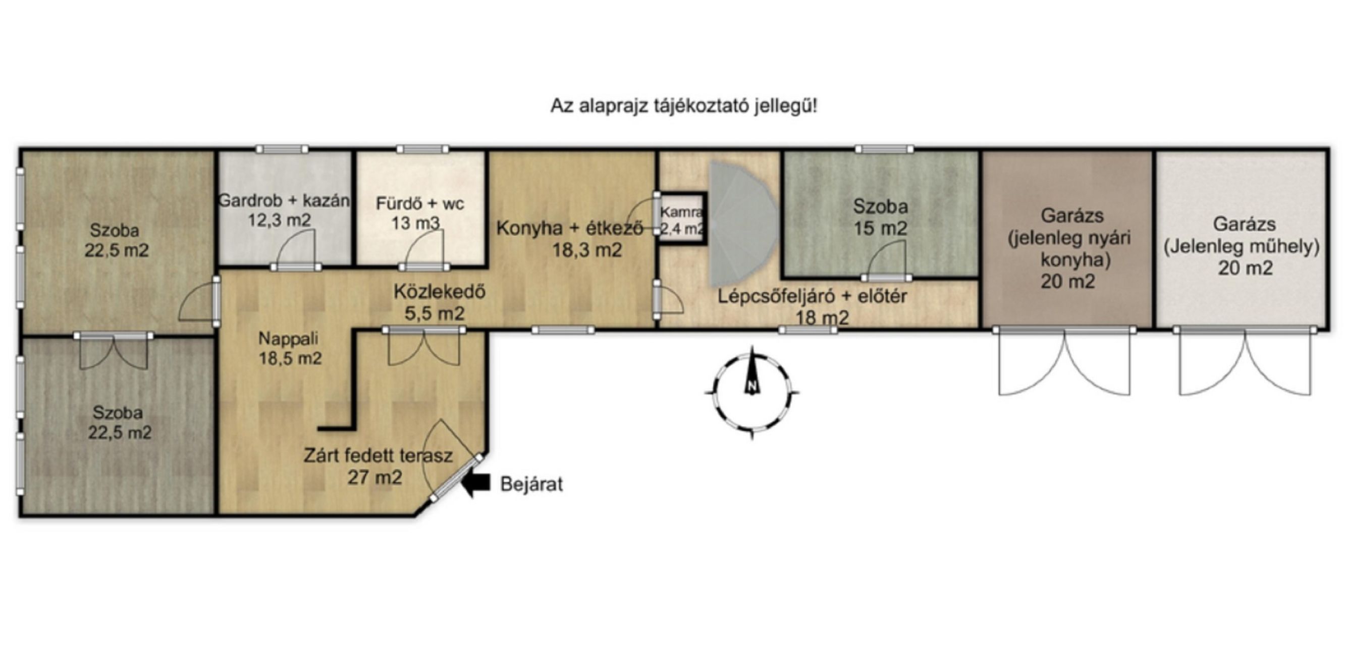 Két 20 m2-es garázs van, jelenleg az egyik "nyári konyhaként" a másik "műhelyként" funkcionál.