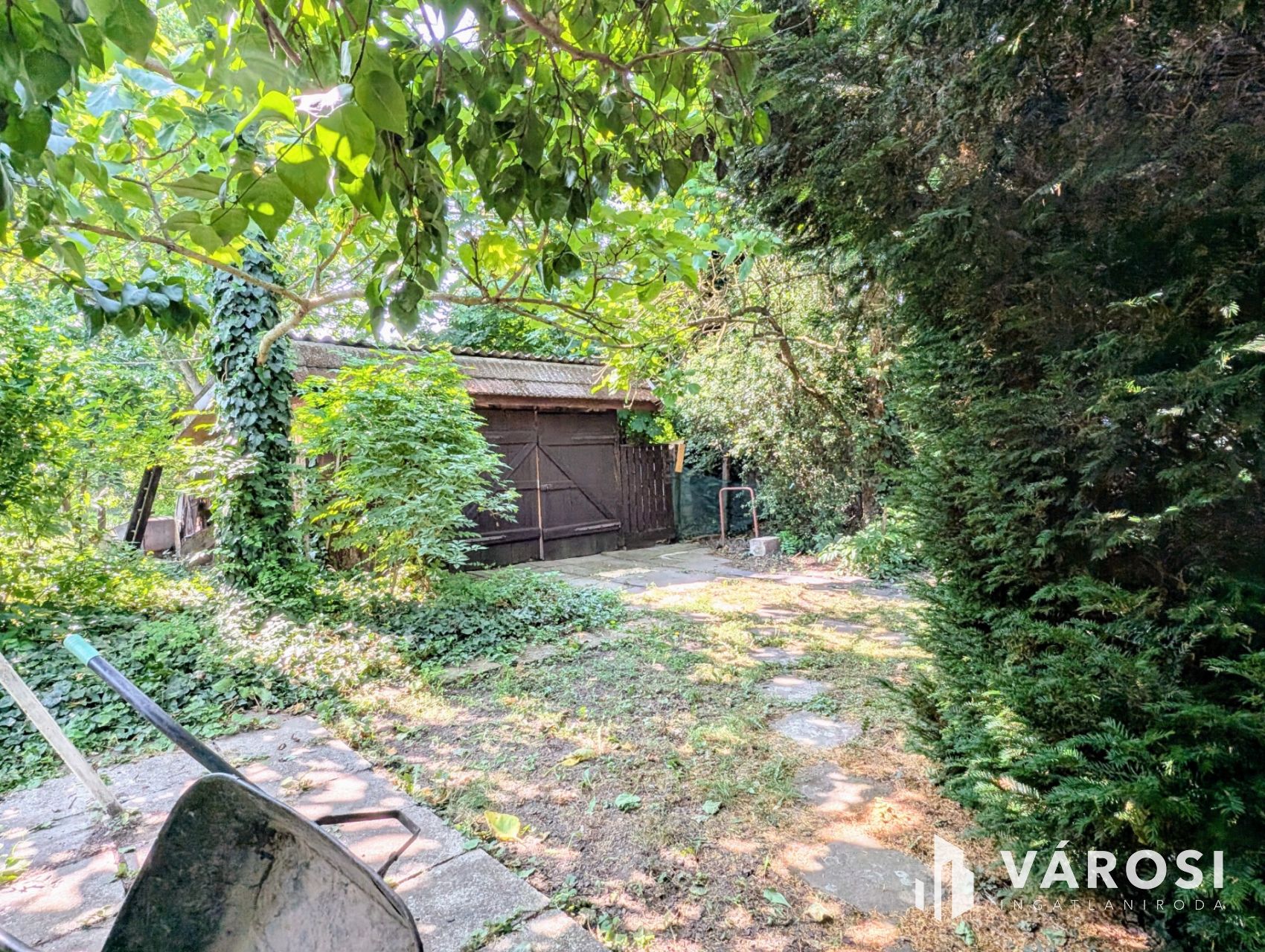 Egy melléképület és egy garázs is található a körülkerített kertben.