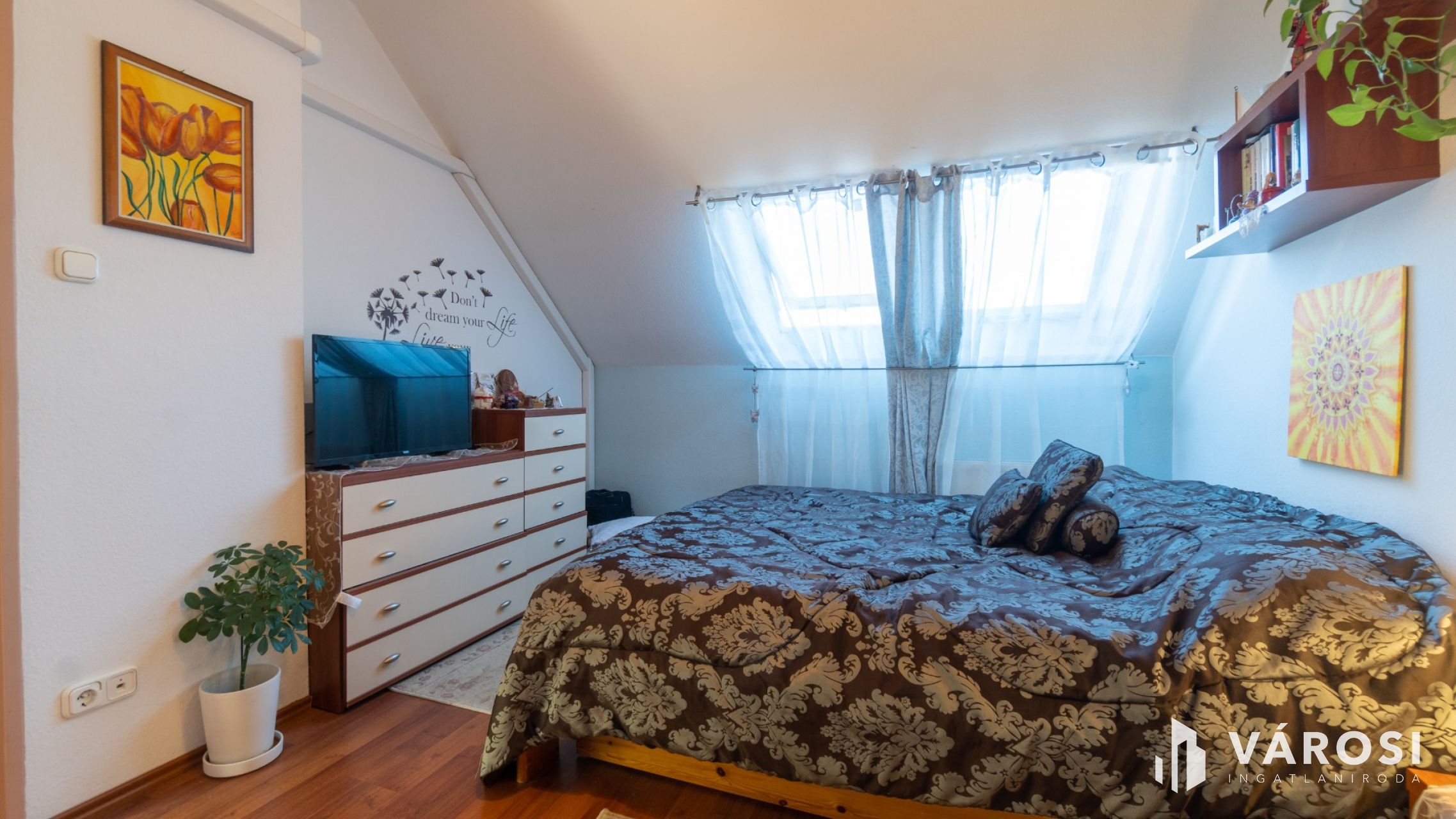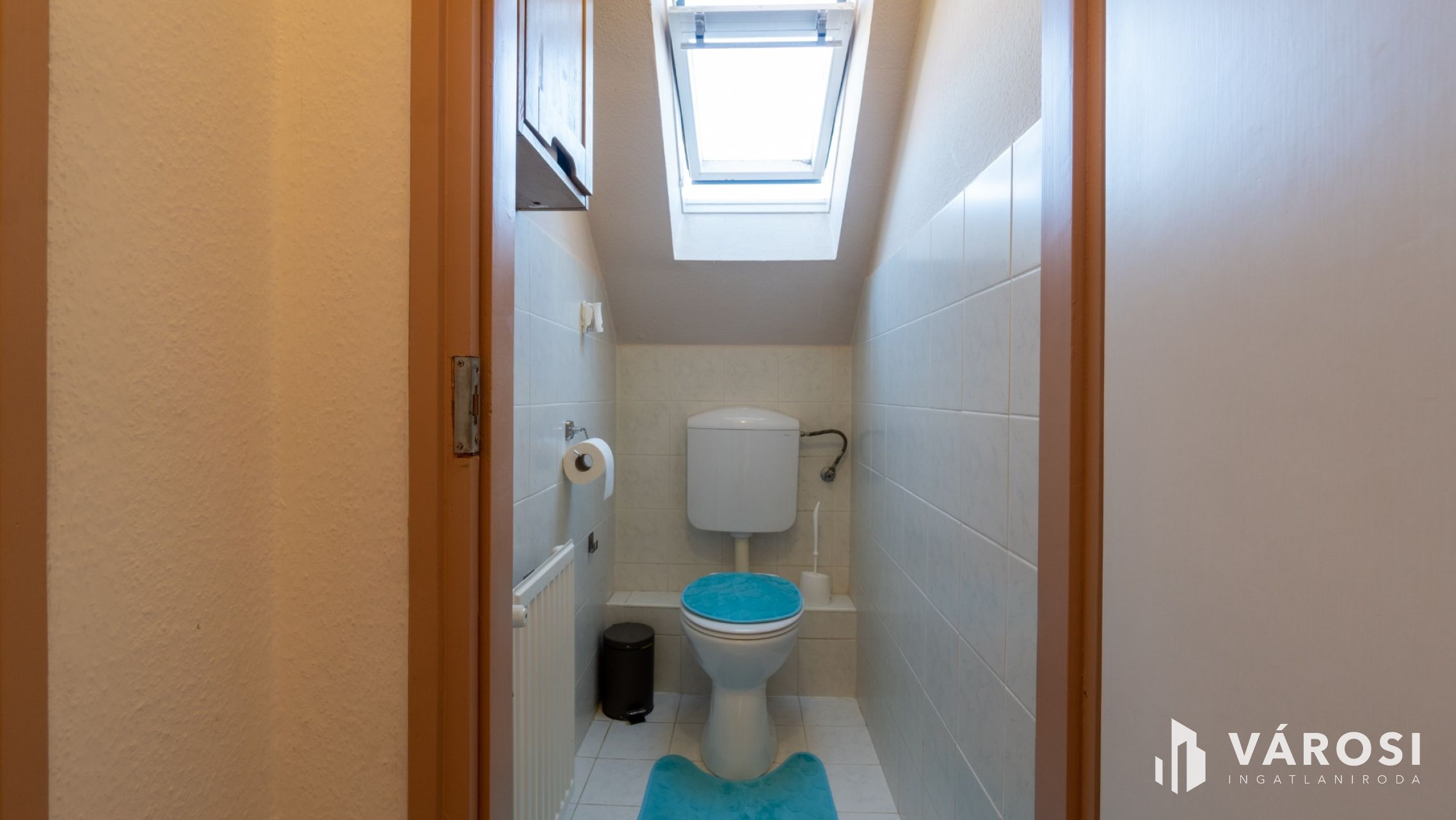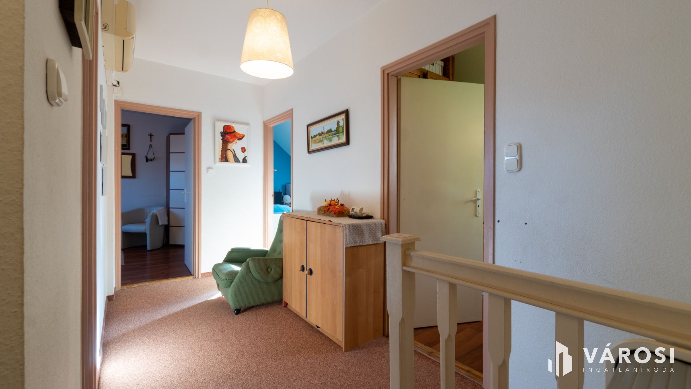 Az emeleten három hálószoba, egy káddal felszerelt fürdőszoba, külön WC, gardrób és közlekedő kapott helyet, így a ház akár nagyobb család számára is kényelmesen élhető.