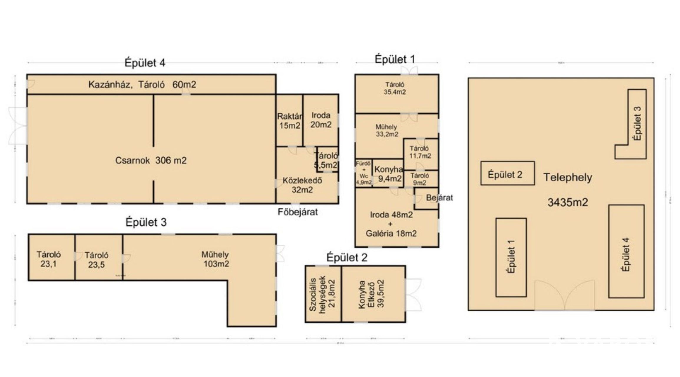 - Az alaprajzon látható 1-2-4 es épületek teljesen klimatizáltak.