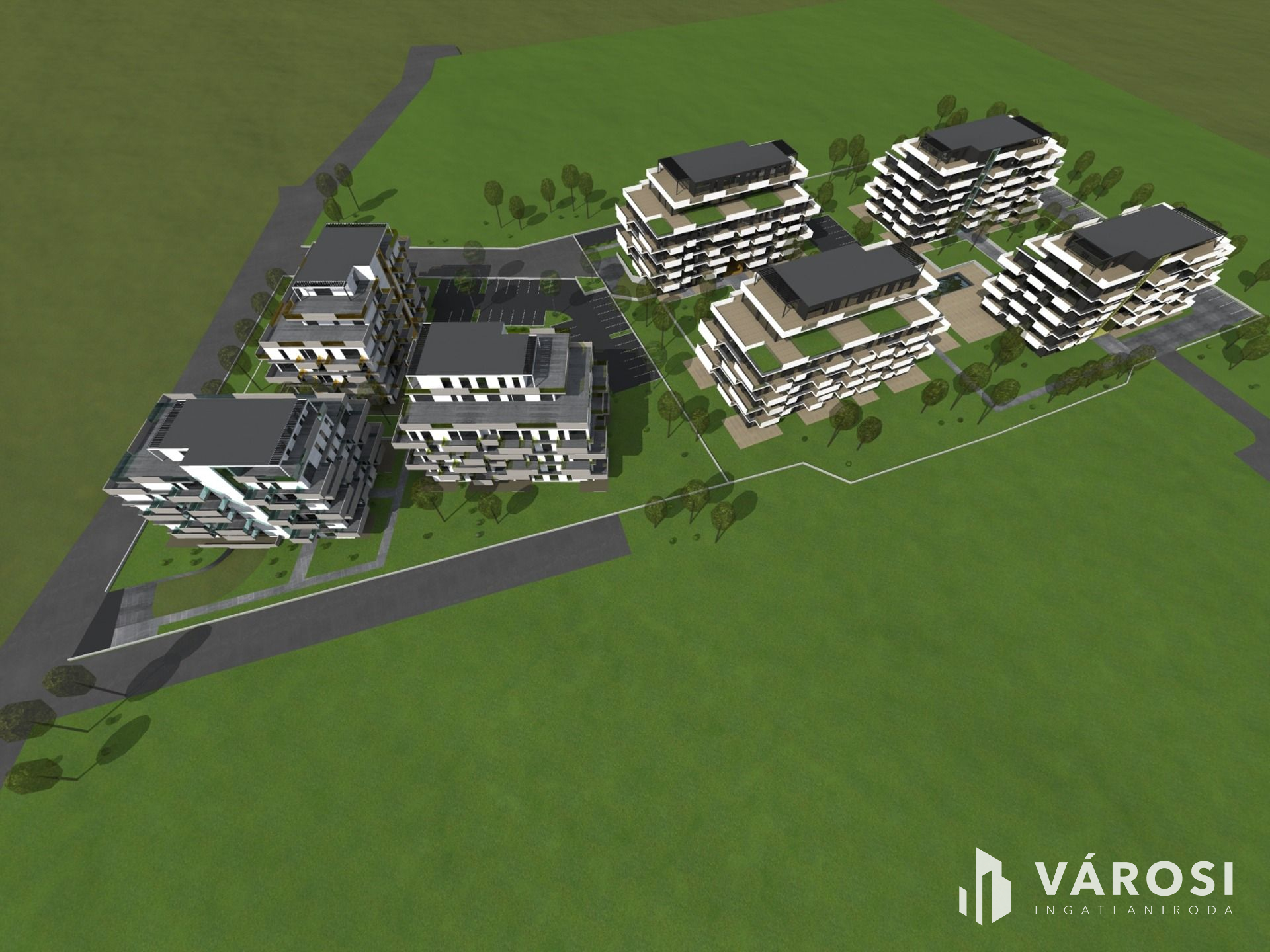 Elérhető egy átfogó fejlesztési koncepció is, amely négy apartmanház építését irányozza elő a területen. Az önkormányzat jóváhagyta a szabályozási terv módosítását, a földhivatal pedig záradékolta az új telekalakítást. A vázrajzok a végleges méretek és helyrajzi számok bemutatását is tartalmazzák.