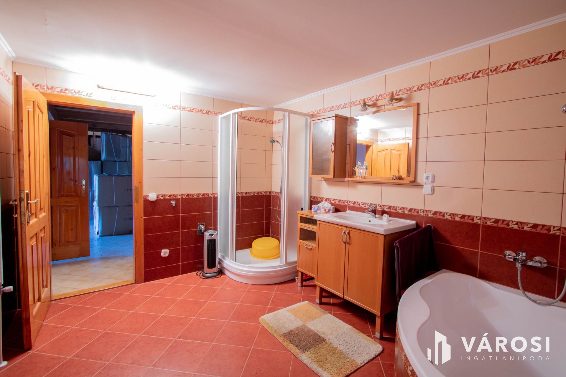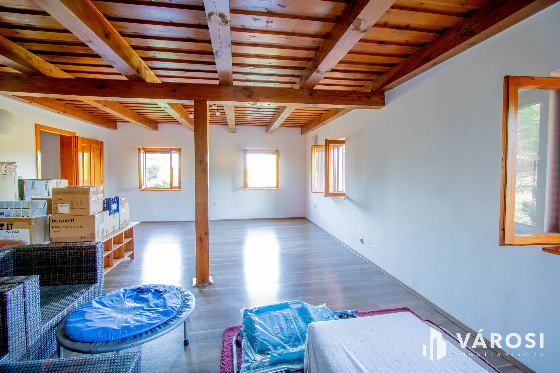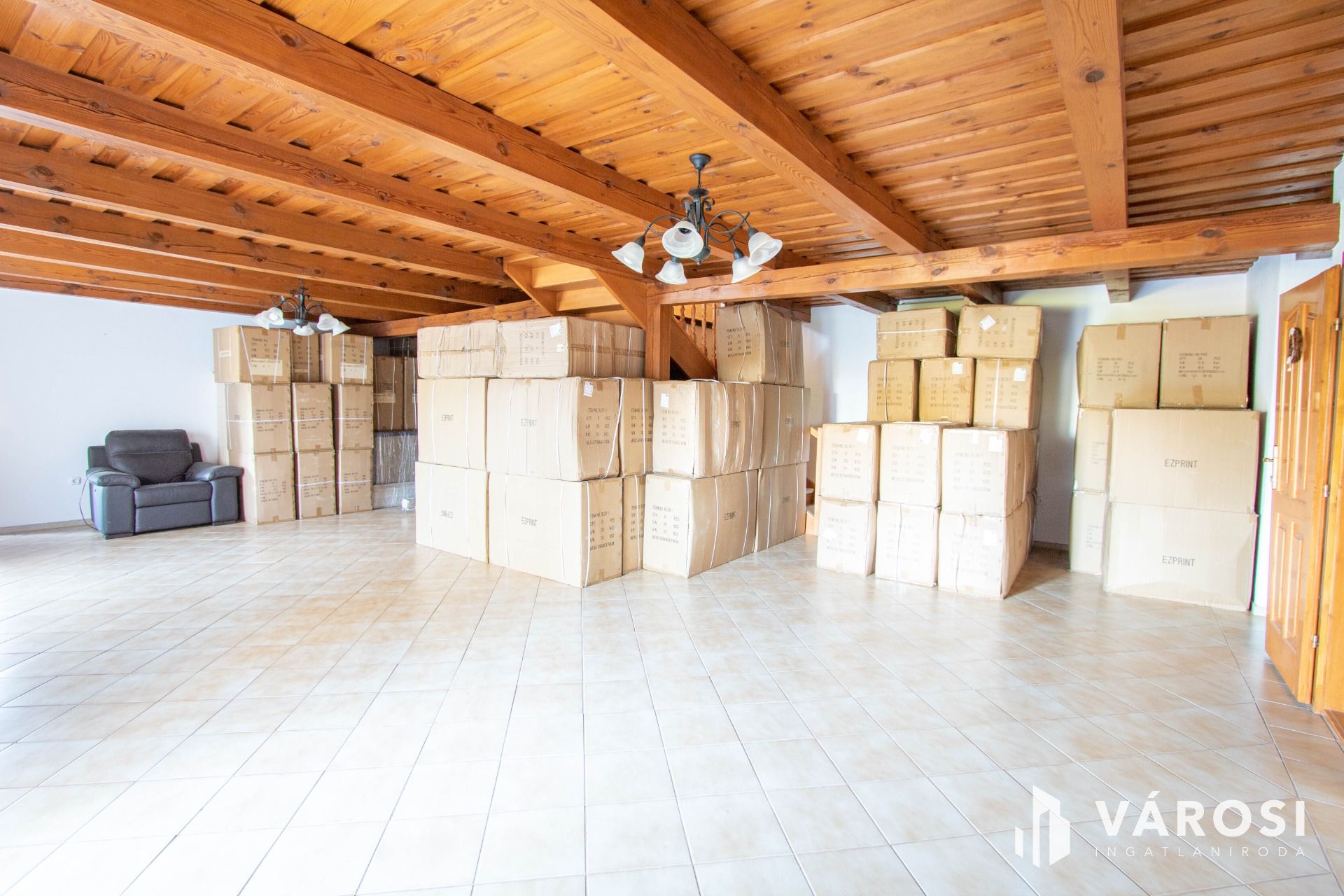 Az épület 3 szintes. Van a garázs szint, ide két vagy több autó is befér parkolás szempontjából. Összesen 152 nm nagy. Itt található egy pelletes kazán ami javításra szorul. Itt kialakításra került még egy 20 nm nagyságú tárolós rész is, de akár nyári konyhának is kiváló lehet. A földszinti részre érve, ez is 152 nm nagy, egy tágas 70 nm nagyságú nappalihoz érünk. Csodásan világos és káprázatosan szép a gerendás mennyezettel. Itt található még egy nagyszoba 42 nm nagy, de ez bárminek is használható. A csodaszép konyha+ étkező rész. Egy 11 nm fürdőszoba káddal és zuhanyzóval meg egy külön WC is helyett kapott. Az emeleti, tetőtéri részen úgy szint egy 70 nm nappali, 4 szoba és egy fürdő+ WC került kialakításra.