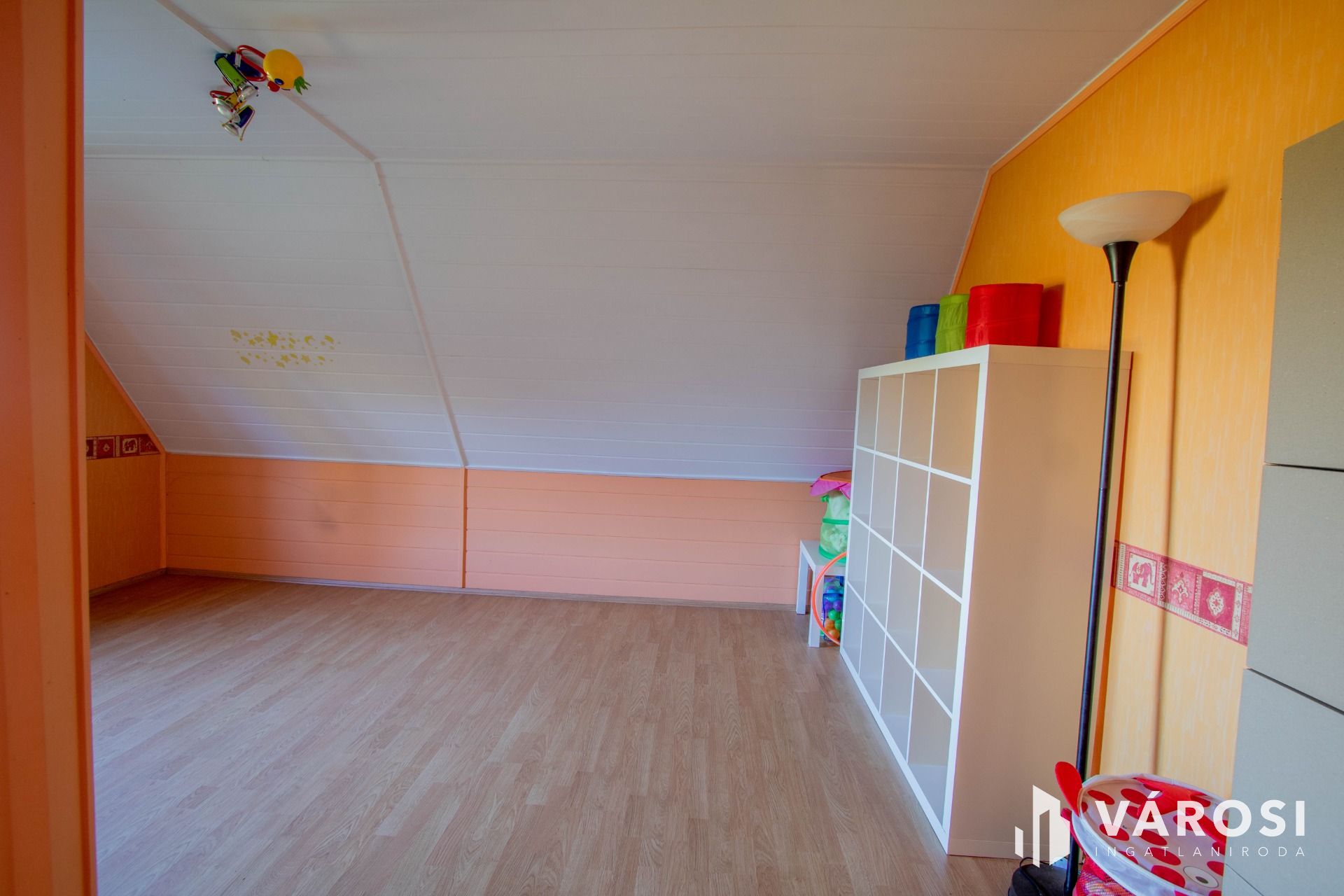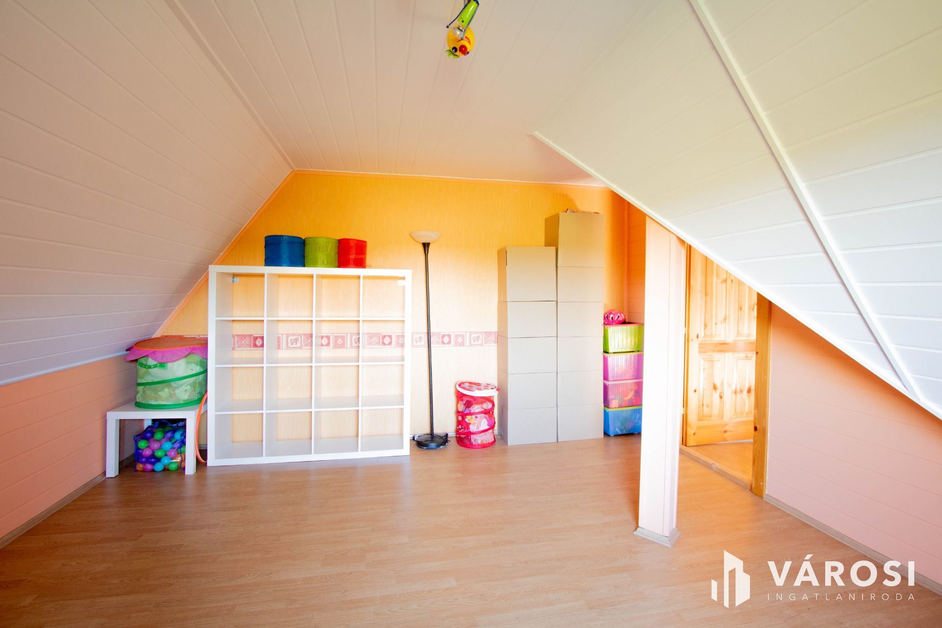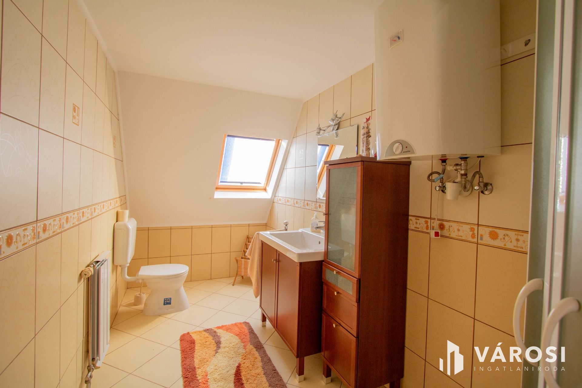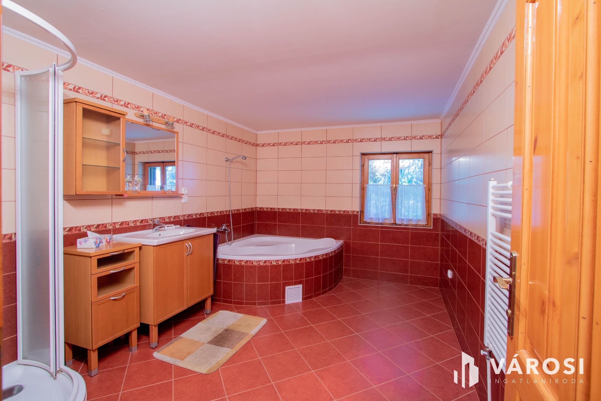 Az épület 3 szintes. Van a garázs szint, ide két vagy több autó is befér parkolás szempontjából. Összesen 152 nm nagy. Itt található egy pelletes kazán ami javításra szorul. Itt kialakításra került még egy 20 nm nagyságú tárolós rész is, de akár nyári konyhának is kiváló lehet. A földszinti részre érve, ez is 152 nm nagy, egy tágas 70 nm nagyságú nappalihoz érünk. Csodásan világos és káprázatosan szép a gerendás mennyezettel. Itt található még egy nagyszoba 42 nm nagy, de ez bárminek is használható. A csodaszép konyha+ étkező rész. Egy 11 nm fürdőszoba káddal és zuhanyzóval meg egy külön WC is helyett kapott. Az emeleti, tetőtéri részen úgy szint egy 70 nm nappali, 4 szoba és egy fürdő+ WC került kialakításra.