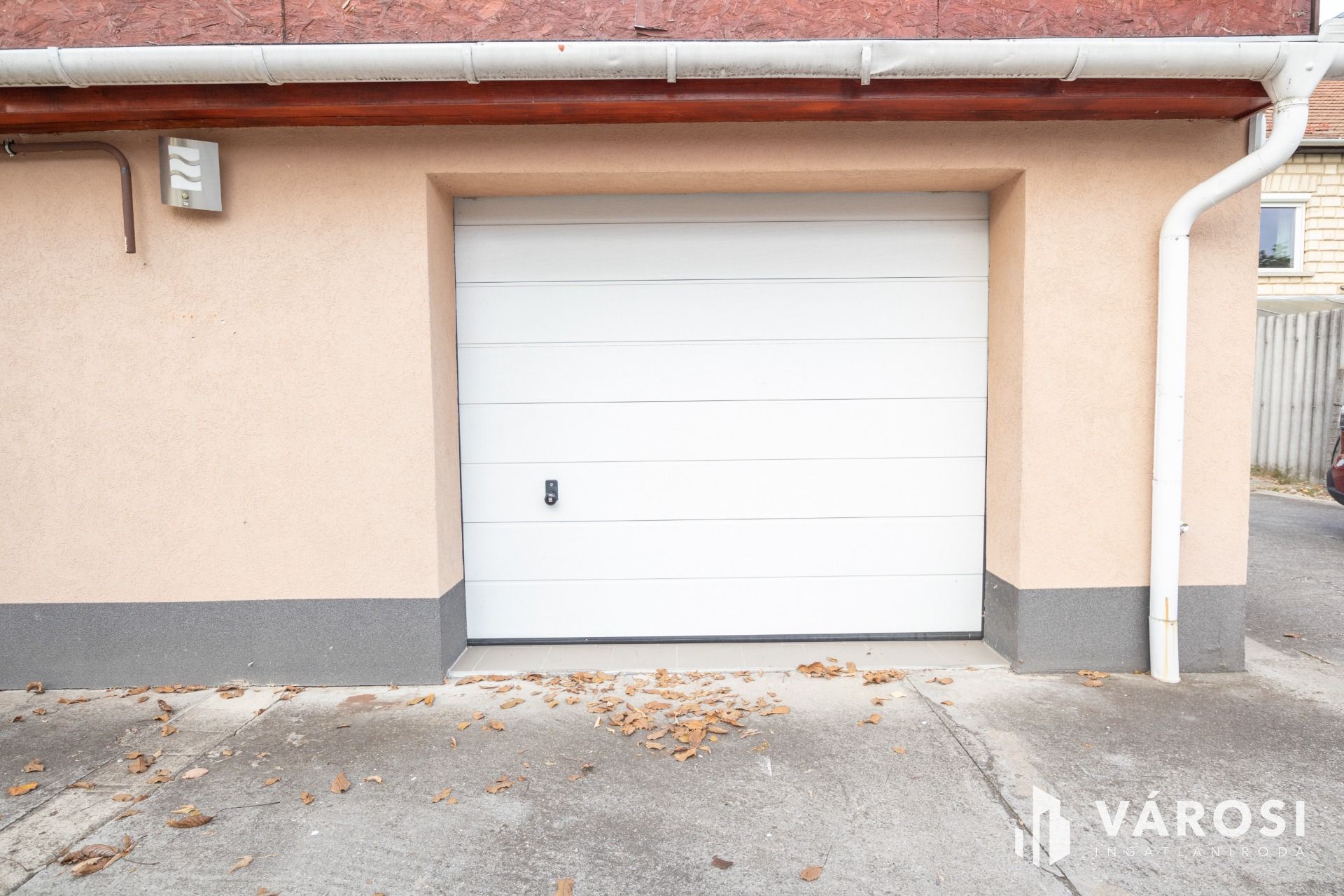 Padlója járólapos, fala csempézett, 2,5 méter széles szekcionált kapuja kényelmessé teszi a ki-és beállást.