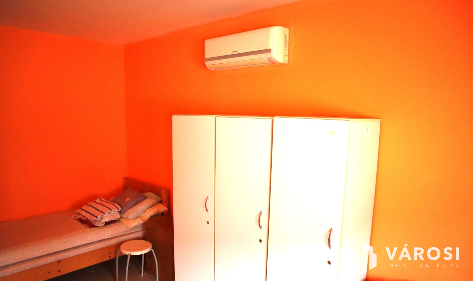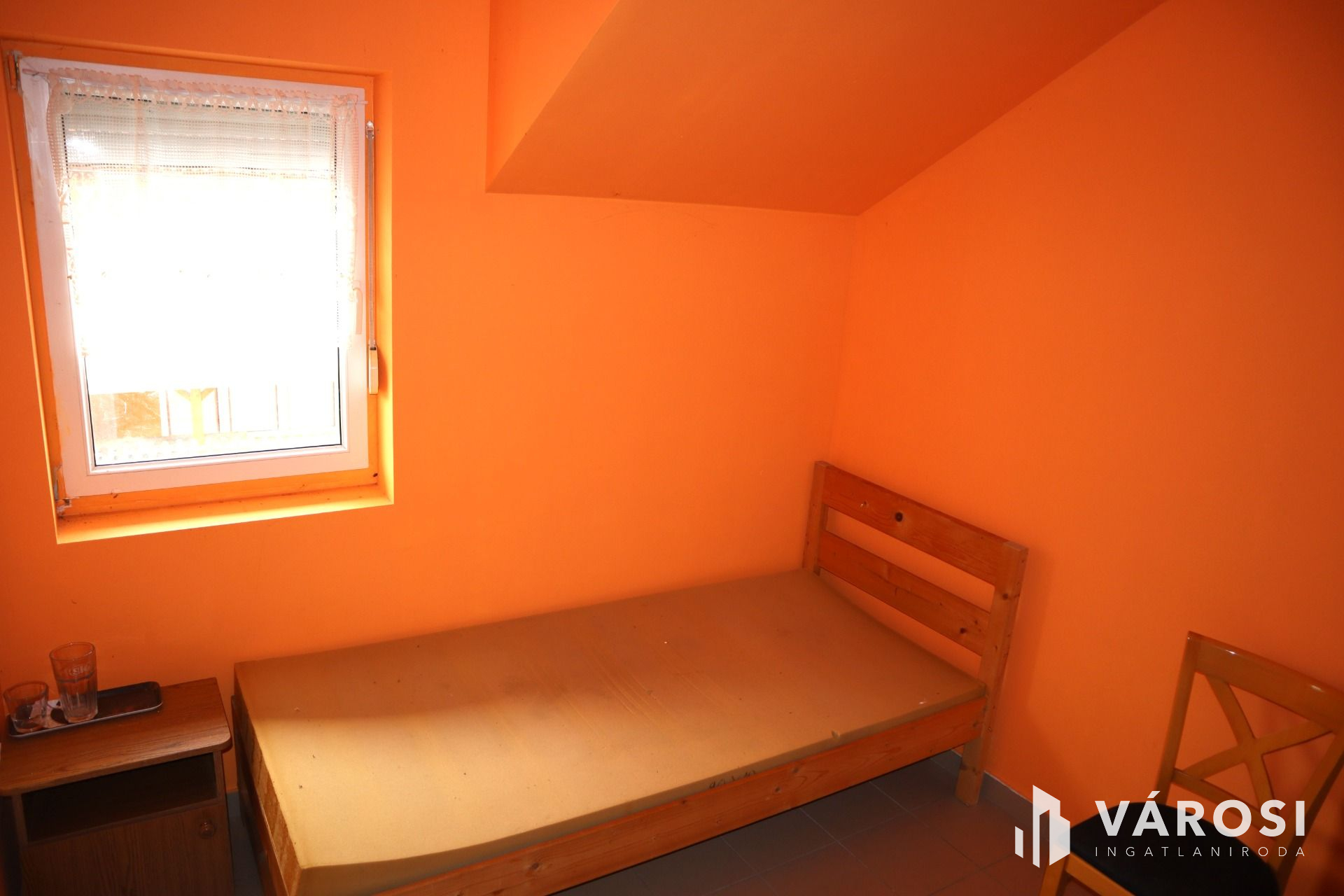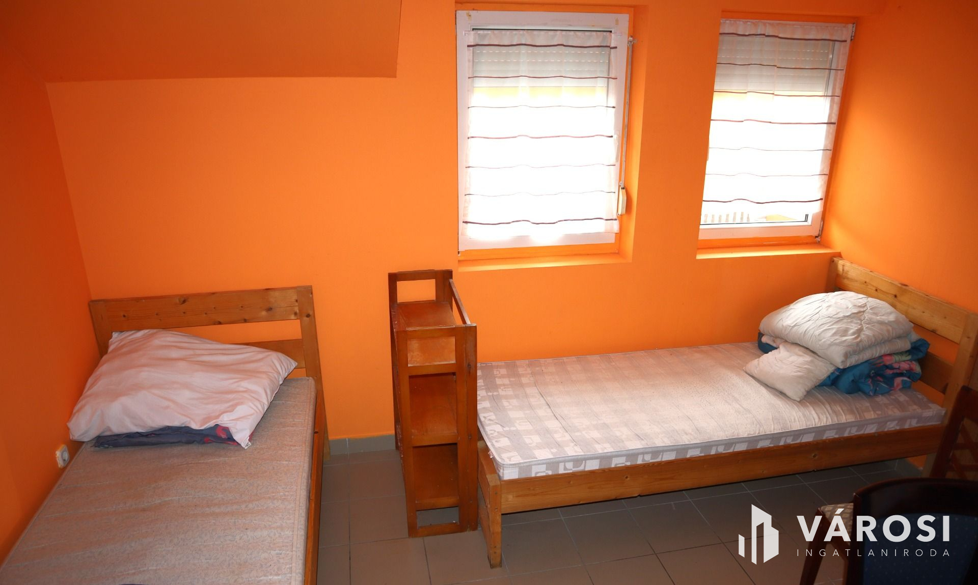 Az emeleten egy három hálószobás és egy fürdőszobás lakás található. Kis ráfordítással és felújítással egy kiváló amerikai-konyhás nappali + 2 hálószoba alakítható ki belőle. Az ingatlan klimatizált, riasztó- és kamerarendszerrel felszerelt.