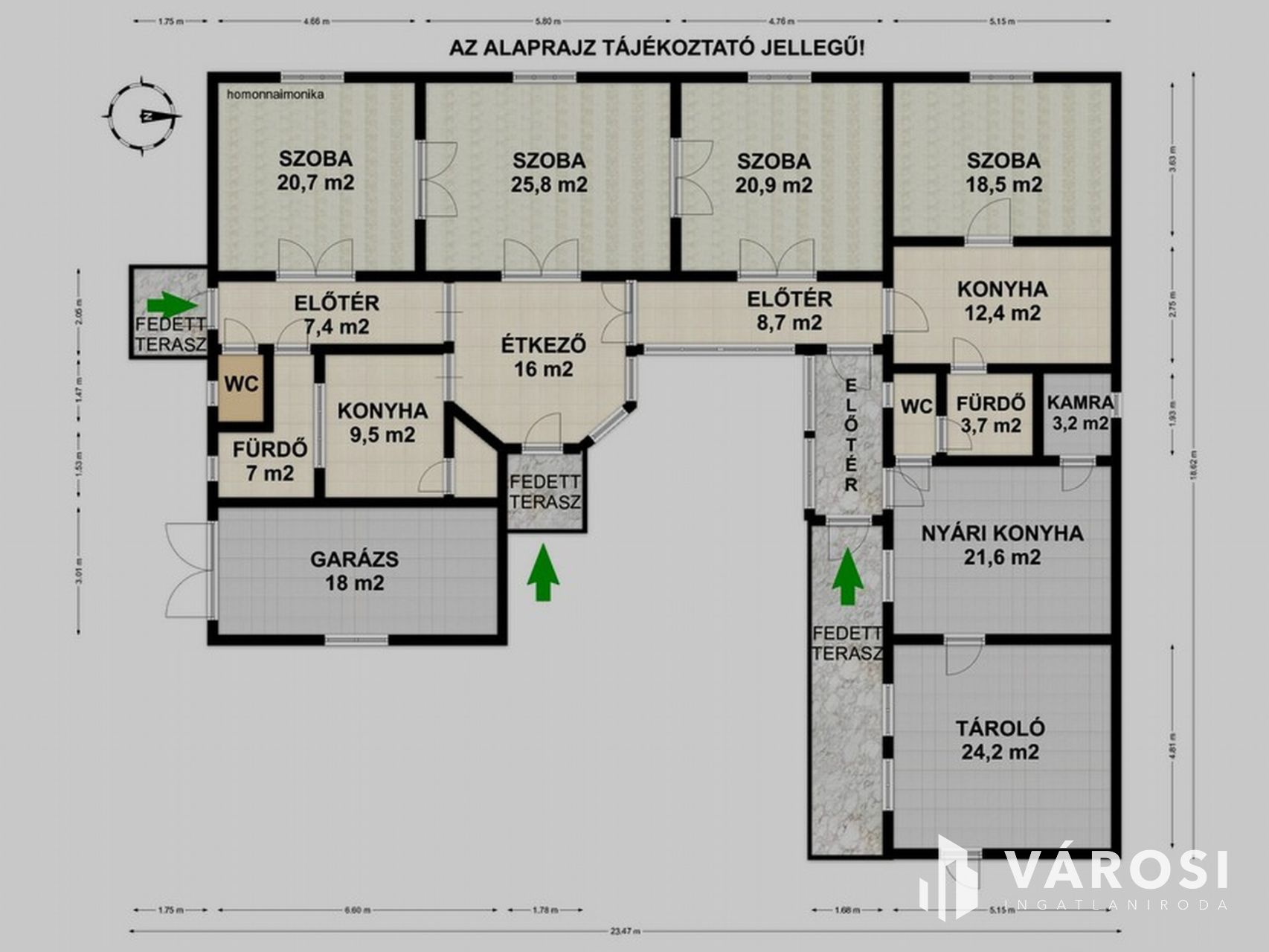 - nappali + 3 külön bejáratú szoba