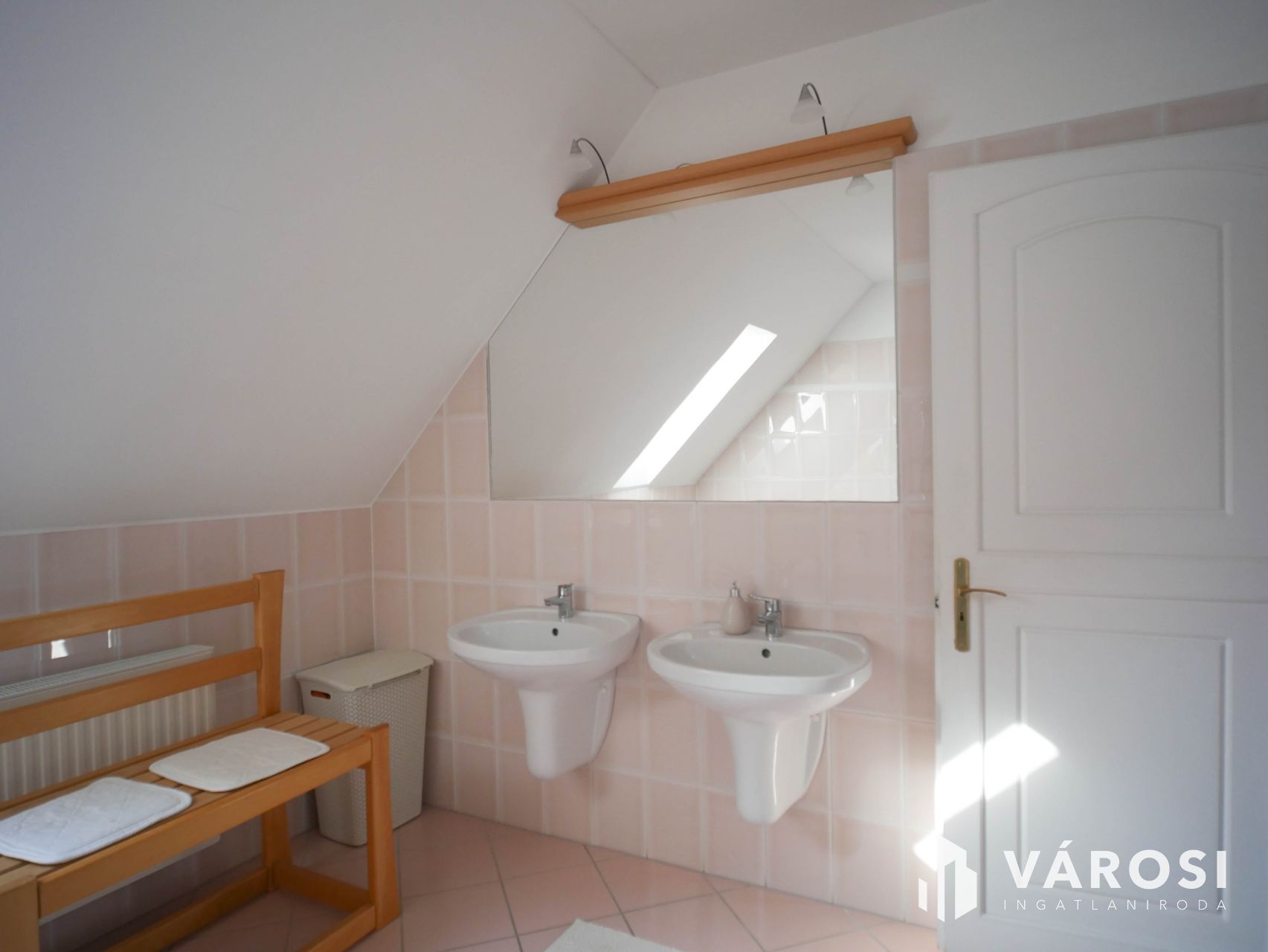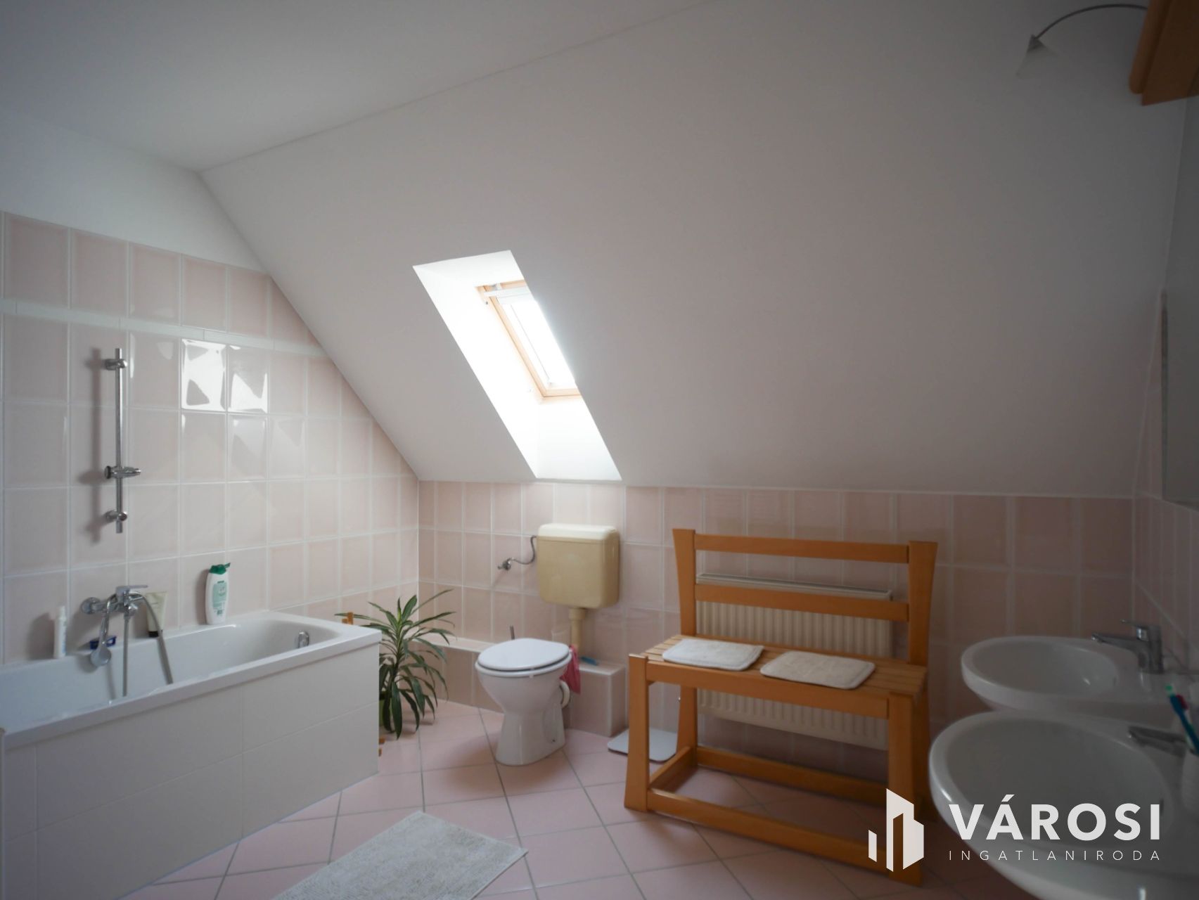 Az emeleten három hálószoba, fürdőszoba, gardrób, galéria és két erkély biztosítja a családtagok számára a nyugodt, szeparált életteret.