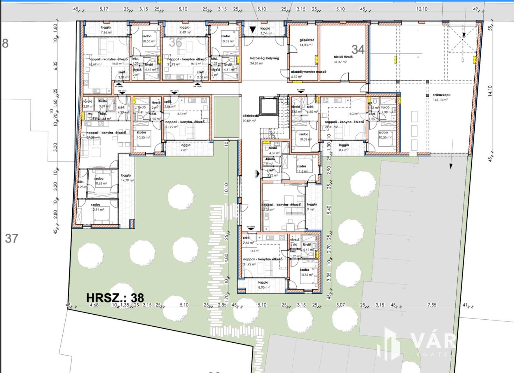 Makón, presztizs lokációval rendelkező - Makói fürdőtől 30 méterre - a Szent János téren, Eladó egy most induló, tégla építésű, FÖLDSZINTI, 50,18 nm-es élettérrel rendelkező, amerikai konyha nappali plusz két szobás loggiás lakás (004.lakás), liftes házban.