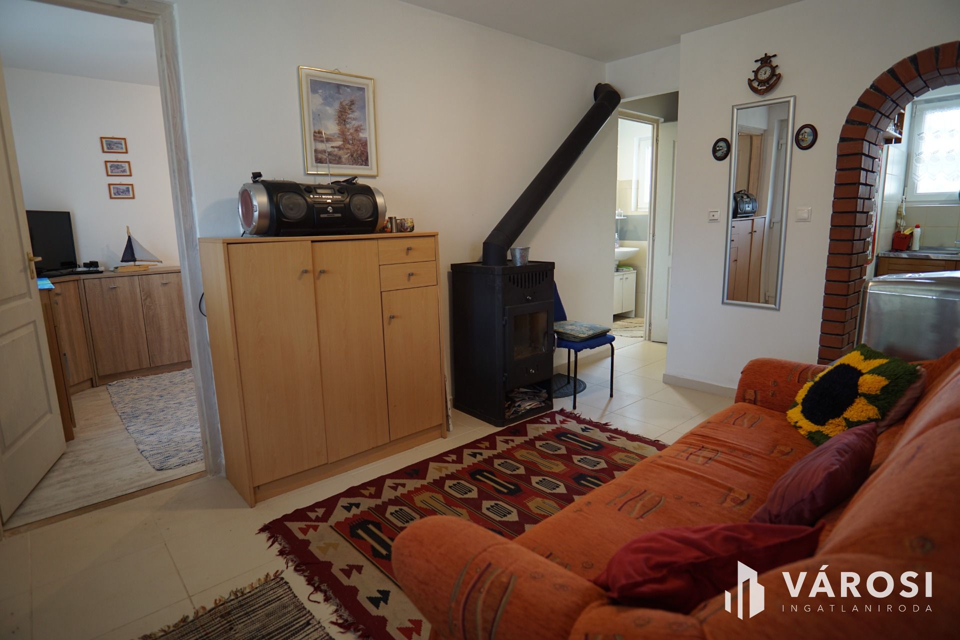 A ház melegét egy fa tüzelésű kandalló szolgáltatja, mely víz térrel is rendelkezik, így akár a központi fűtés is kialakítható. (A két szoba falában az előszerelés, csövezés elkészült a kandallóig.)