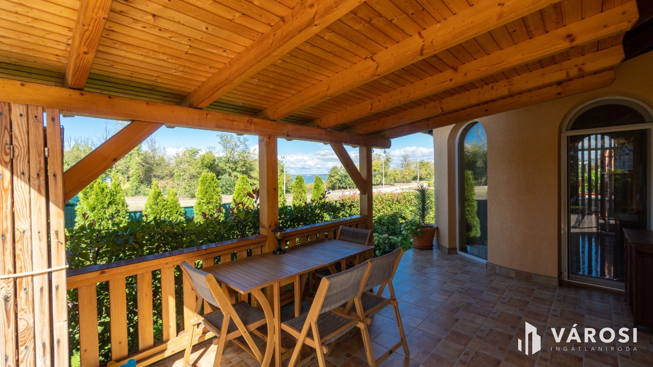 Az ingatlan egyik kiemelt értéke a parkosított, gazdagon beültetett kert, ahol nemcsak dísznövények, hanem számos fa, bokor és termő gyümölcsfa is található. A fúrt kút csak tovább növeli a kert fenntartásának hatékonyságát. A házhoz 2 terasz is kapcsolódik, mindkettő balatoni panorámás, melyek kiváló helyszínt biztosítanak kávézáshoz, pihenéshez vagy vendégfogadáshoz. Az egyik terasz nyugati és részben fedett, a másik pedig keleti fekvésű, így bármelyik napszakban találhatunk magunknak egy hangulatos helyet a kikapcsolódásra.