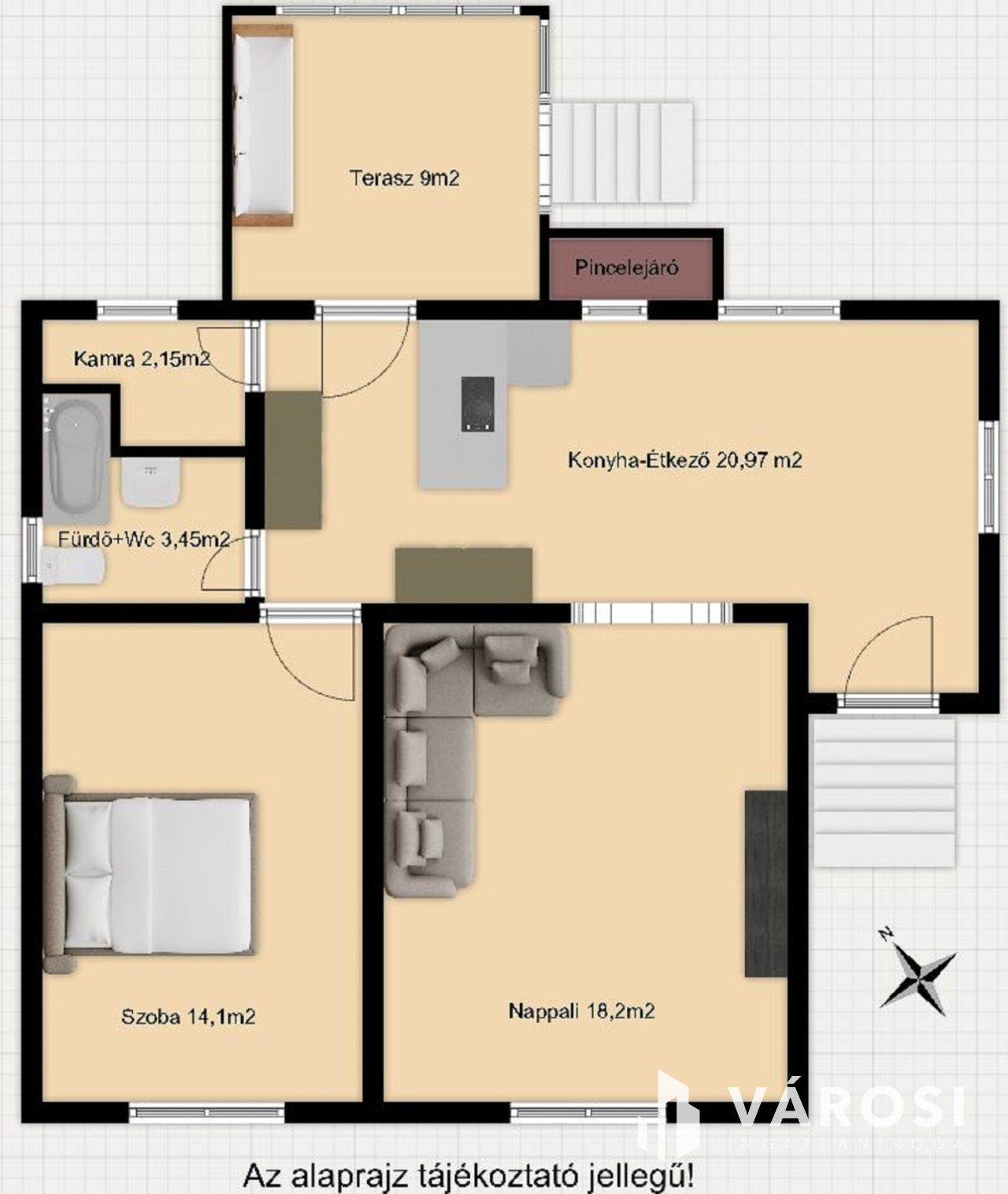 A ház praktikus méretű, fenntartása kedvező, és saját udvar is tartozik hozzá.