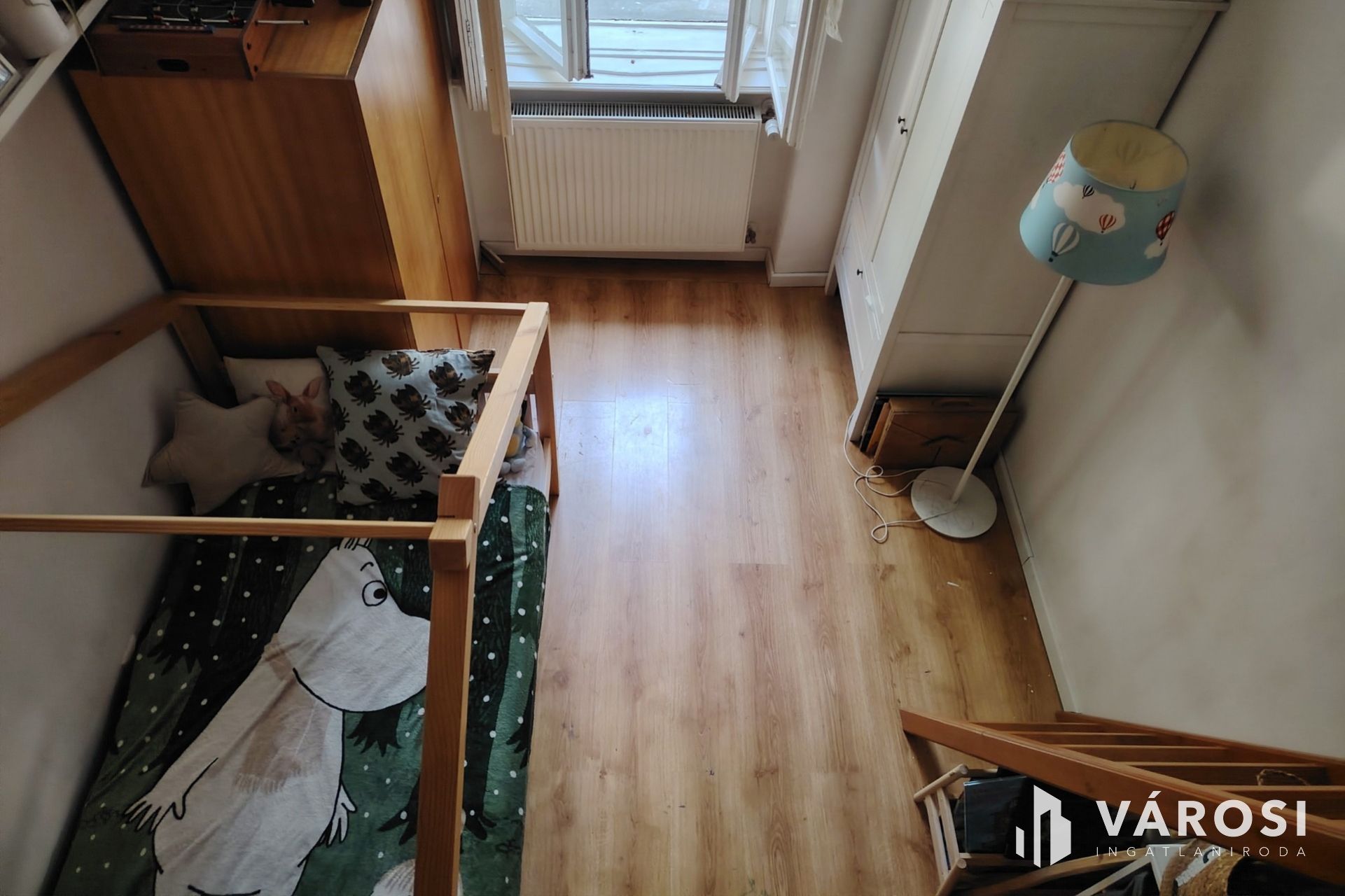 A well-laid-out, truly family-friendly home is for sale near Szent István Square, on Bercsényi Street. From the first-floor open corridor, you enter the spacious, 16-square-meter kitchen of this bourgeois-style apartment. From here, you can access the bathroom and the hallway connecting the rooms, which leads to three separate, full-sized rooms. The living room is 20 square meters, and the two bedrooms are 12 square meters each; both bedrooms feature a 5-square-meter mezzanine. The rooms have laminate flooring, while the wet areas are finished with tile. The windows in the rooms are classic double, double-wing wooden windows matching the bourgeois style, with original, beautiful interior shutters. On the corridor side, the entrance door has been replaced with a new plastic door with a security lock, and the kitchen window is a new wooden window with insulated glazing. A combi boiler provides domestic hot water and supplies the radiators.