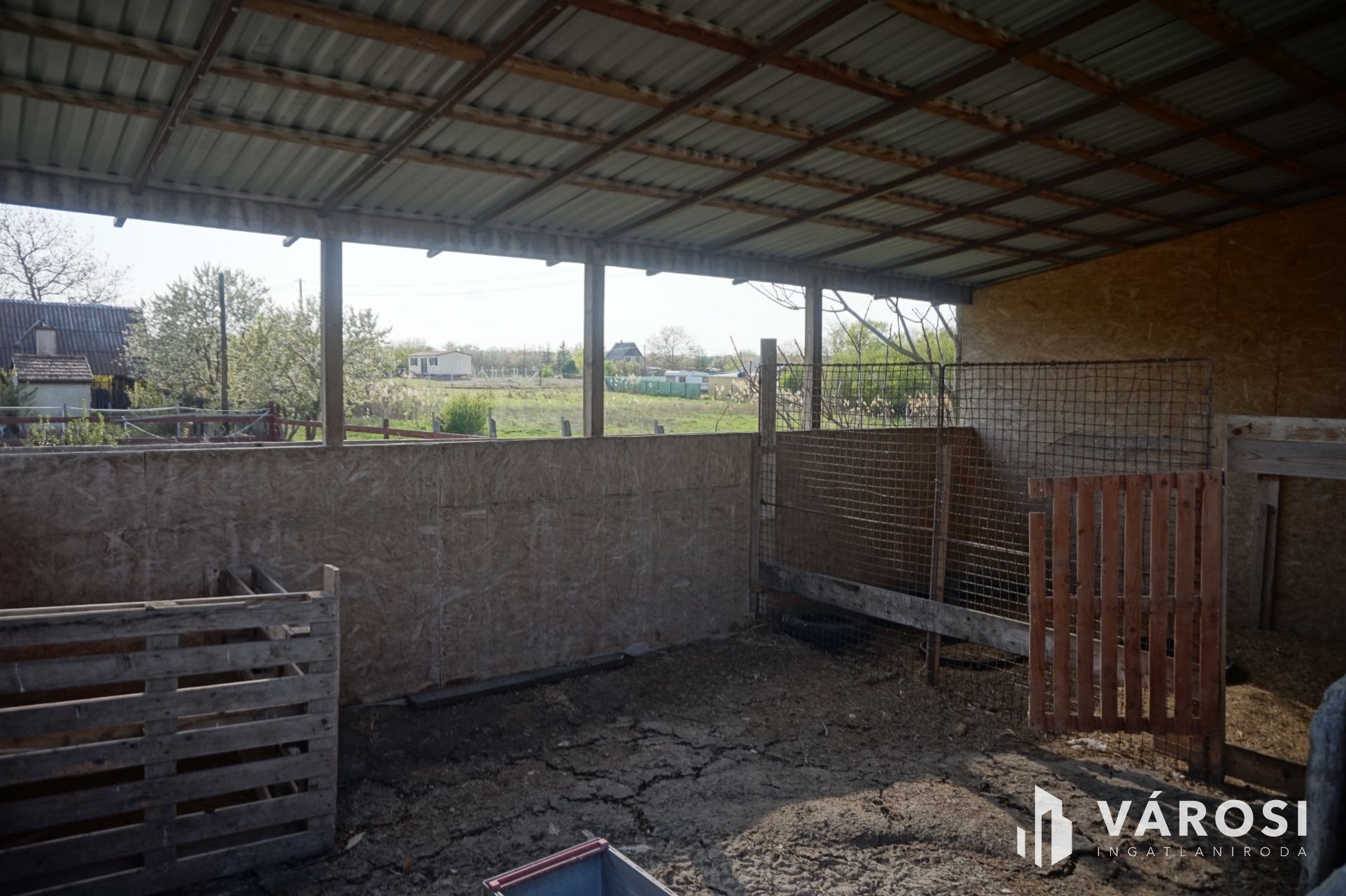 A 2625 négyzetméteres teljesen elkerített területen található egy nemrég épült istálló és egy könnyűszerkezetes házikó.