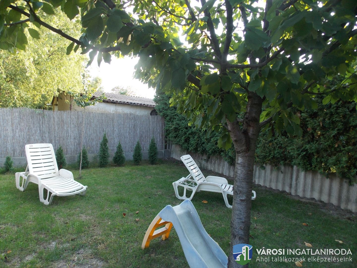 - A telek hátsó részében egy elkerített, gazdálkodásra alkalmas földterület található, amelyben korábban fenyőfákat telepítettek eladásra. Ez a telek, akár építési telekként is nagyon jól funkcionálna megosztás után.