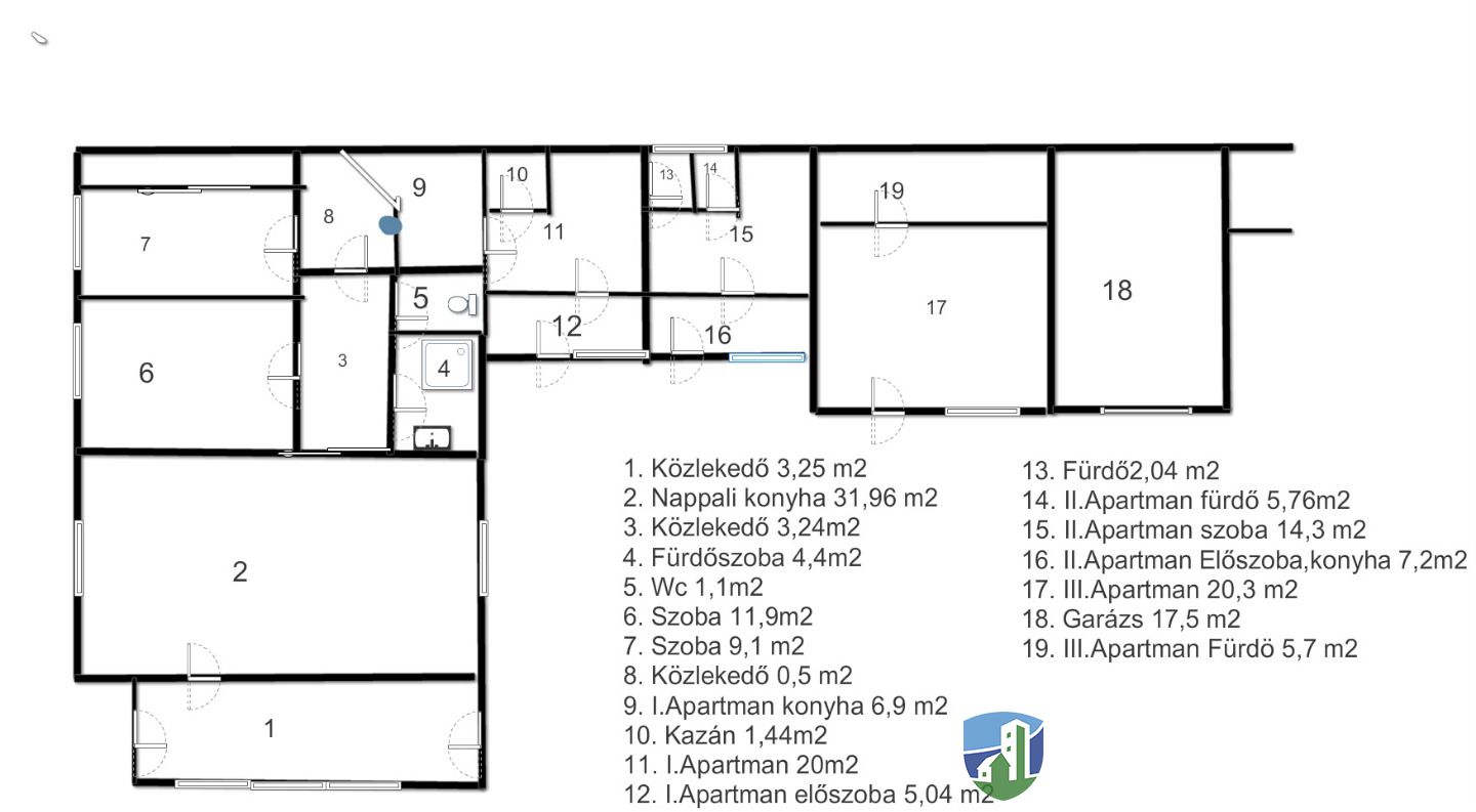 3 db. apartman: mindhárom külön-külön: 1 db. szoba, konyha, fürdőszoba.