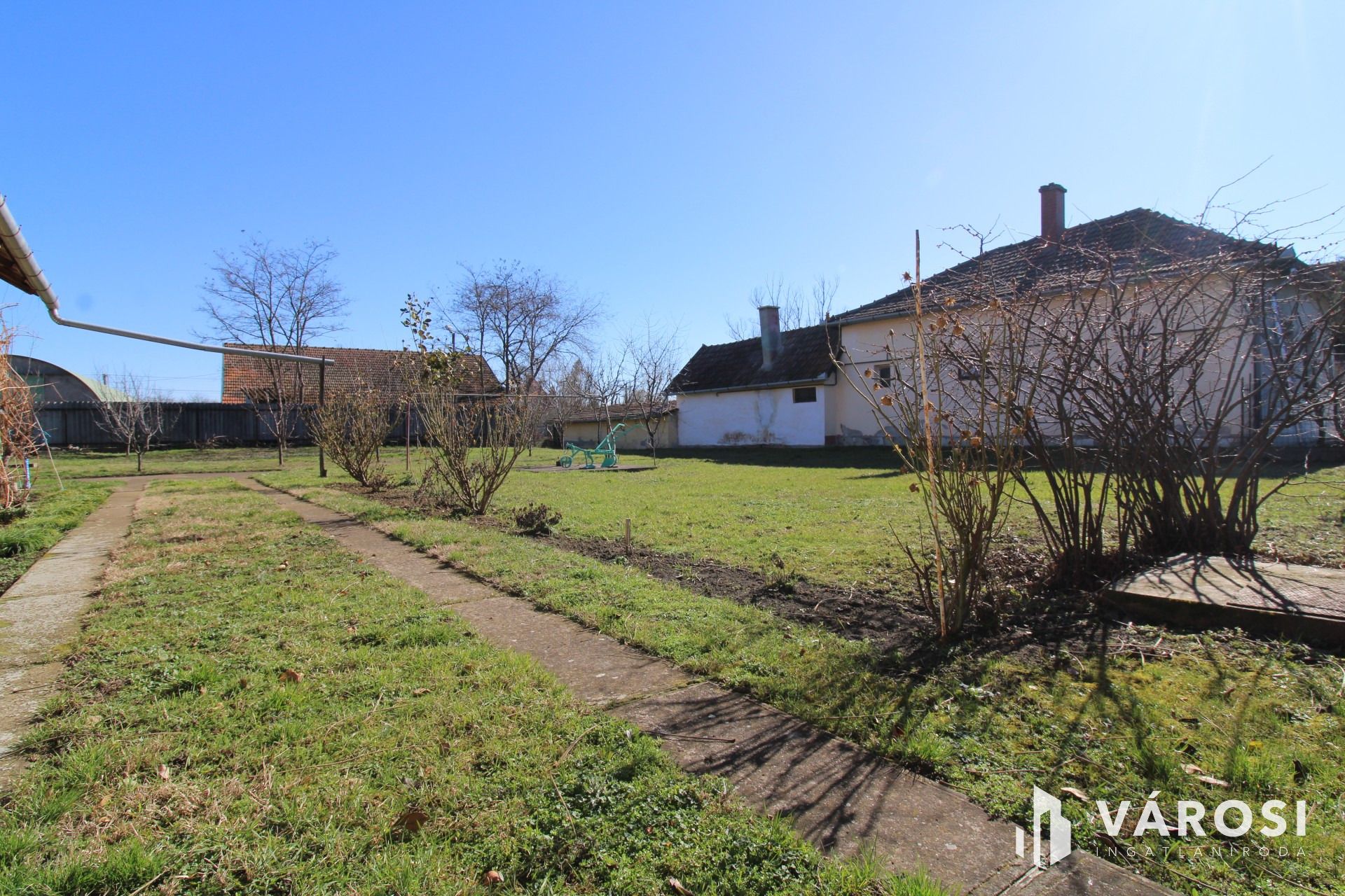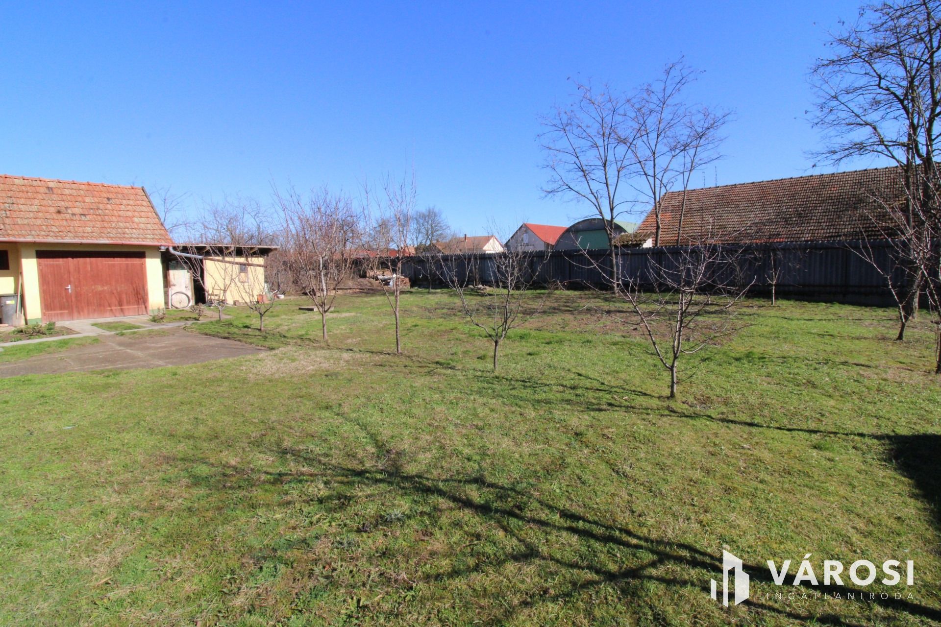A telek teljesen körbe van kerítve, önálló udvarral rendelkezik.