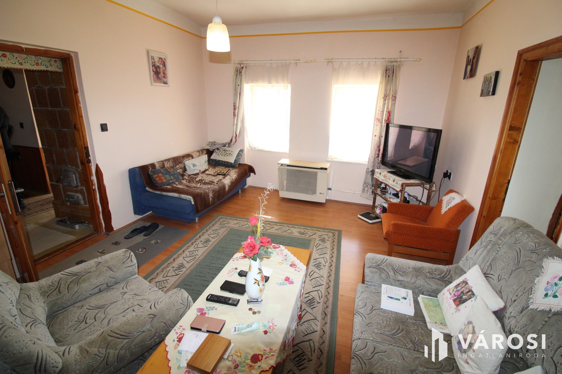 A ház elrendezése is kifogástalan, mivel a szobák könnyen átjárhatók, ablakai redőnyözöttek.