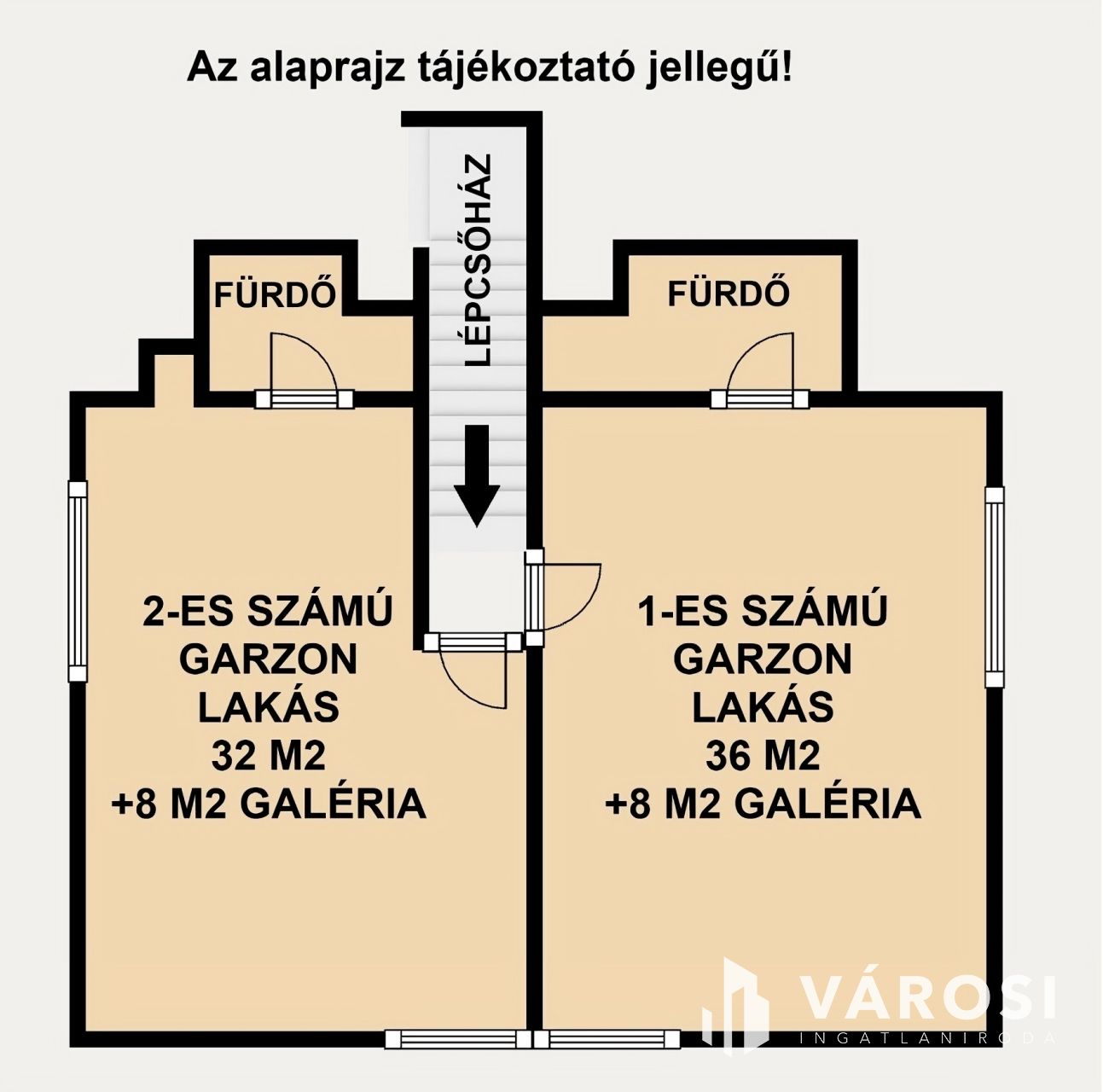 Figyelem! Az alaprajzon szereplő 1-es és 2-es garzon lakás együttes megvételére van kizárólag lehetőség, külön-külön nem eladóak!