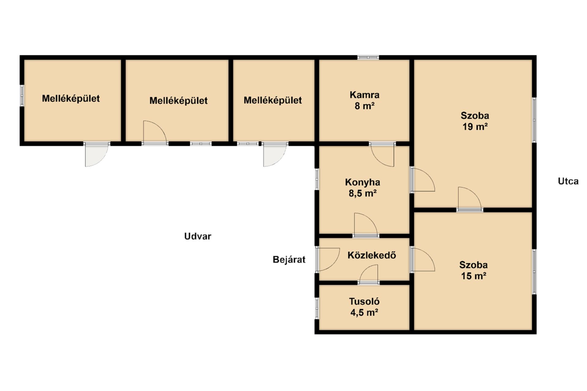 Kettő szobás, vegyes falazatú, 60 m²-es családi ház, melynek telek mérete 440 m².