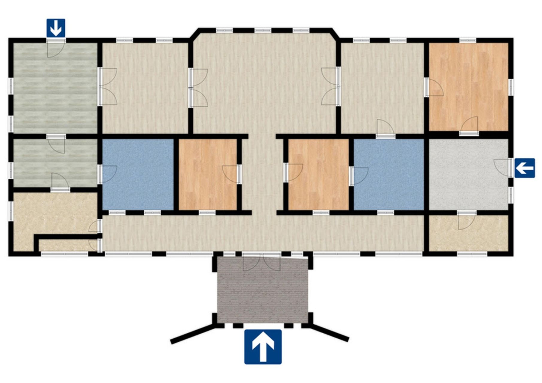 - Gazdasági helyiségek, raktárak, személyzeti WC-k.