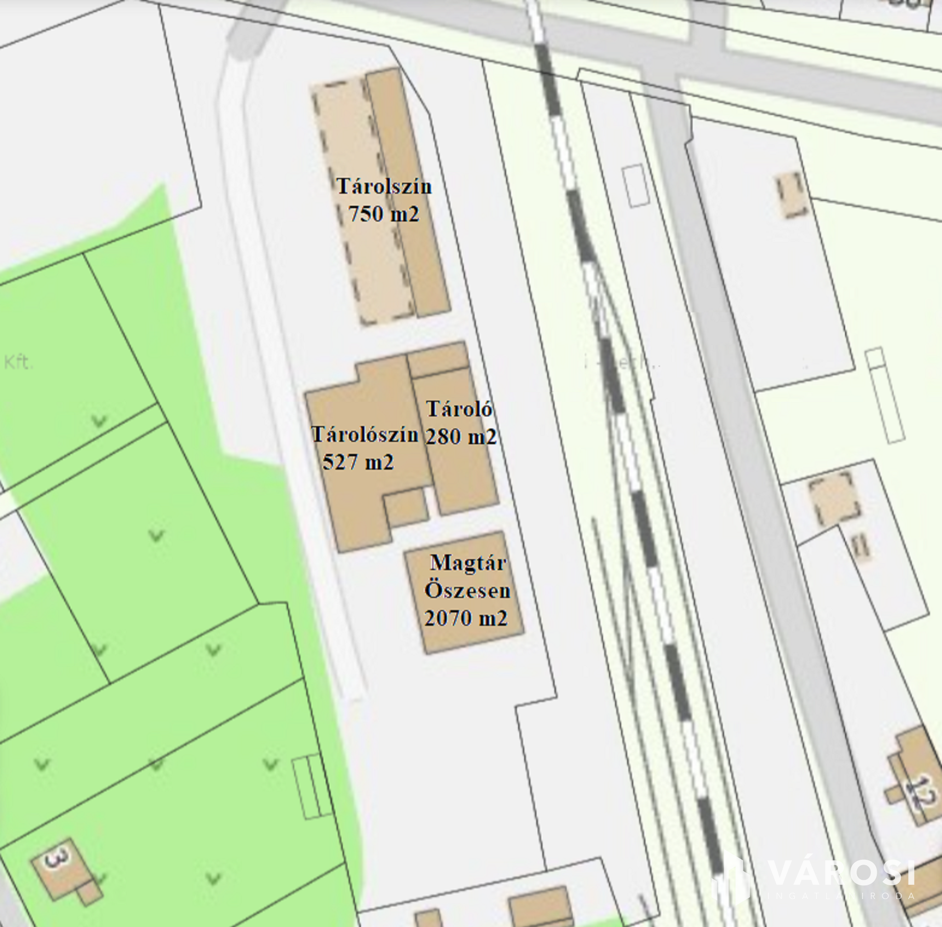 Kiváló adottságú telephely, vasúti iparvágánnyal