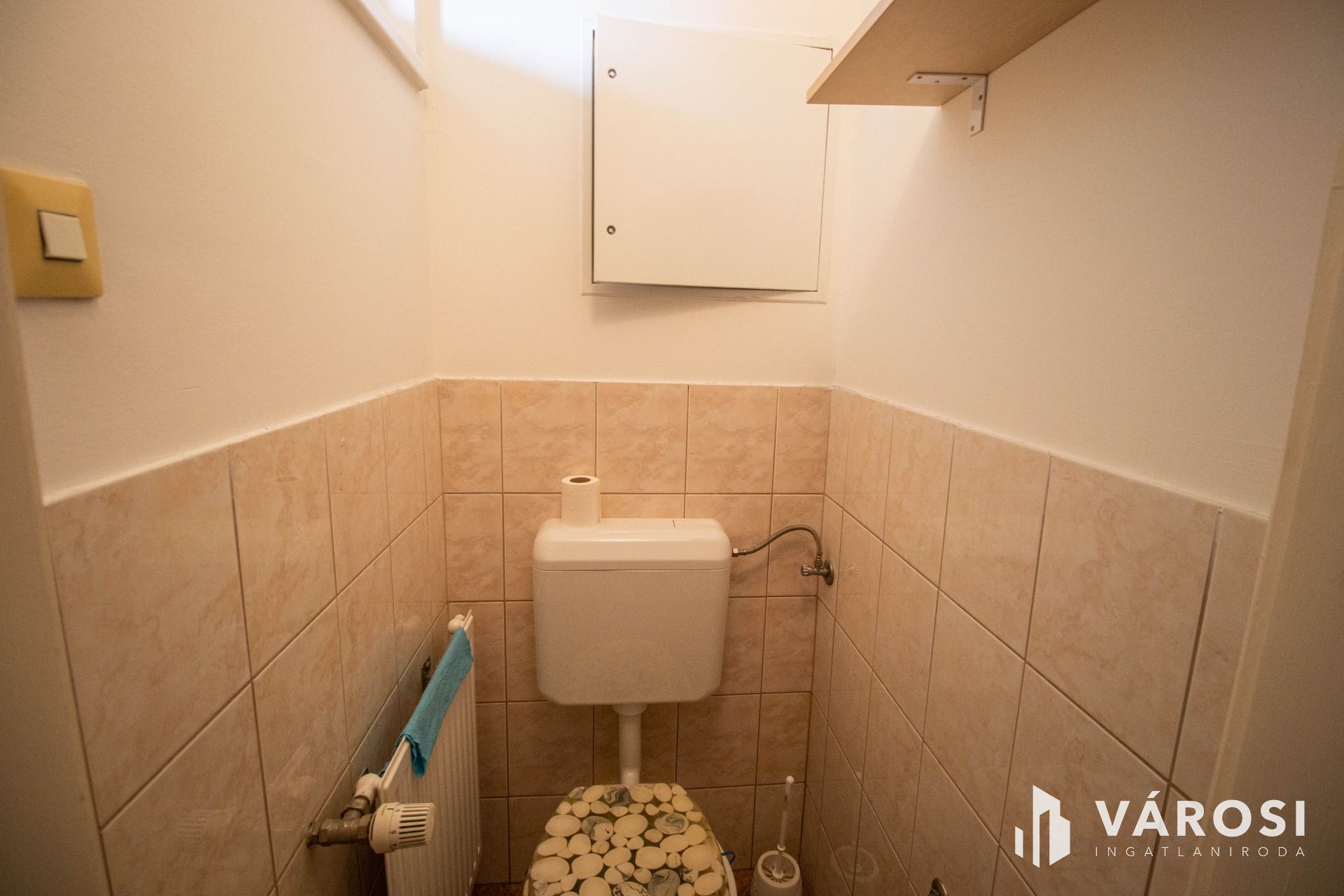 Az udvarra néző nappali + 2 szoba ablakai délkeleti fekvésűek; egyéb helyiségek konyha, spájz, közlekedő, fürdő külön wc, előszobában a bejárat mellett beépített gardrób, műanyag külső nyílászárók.