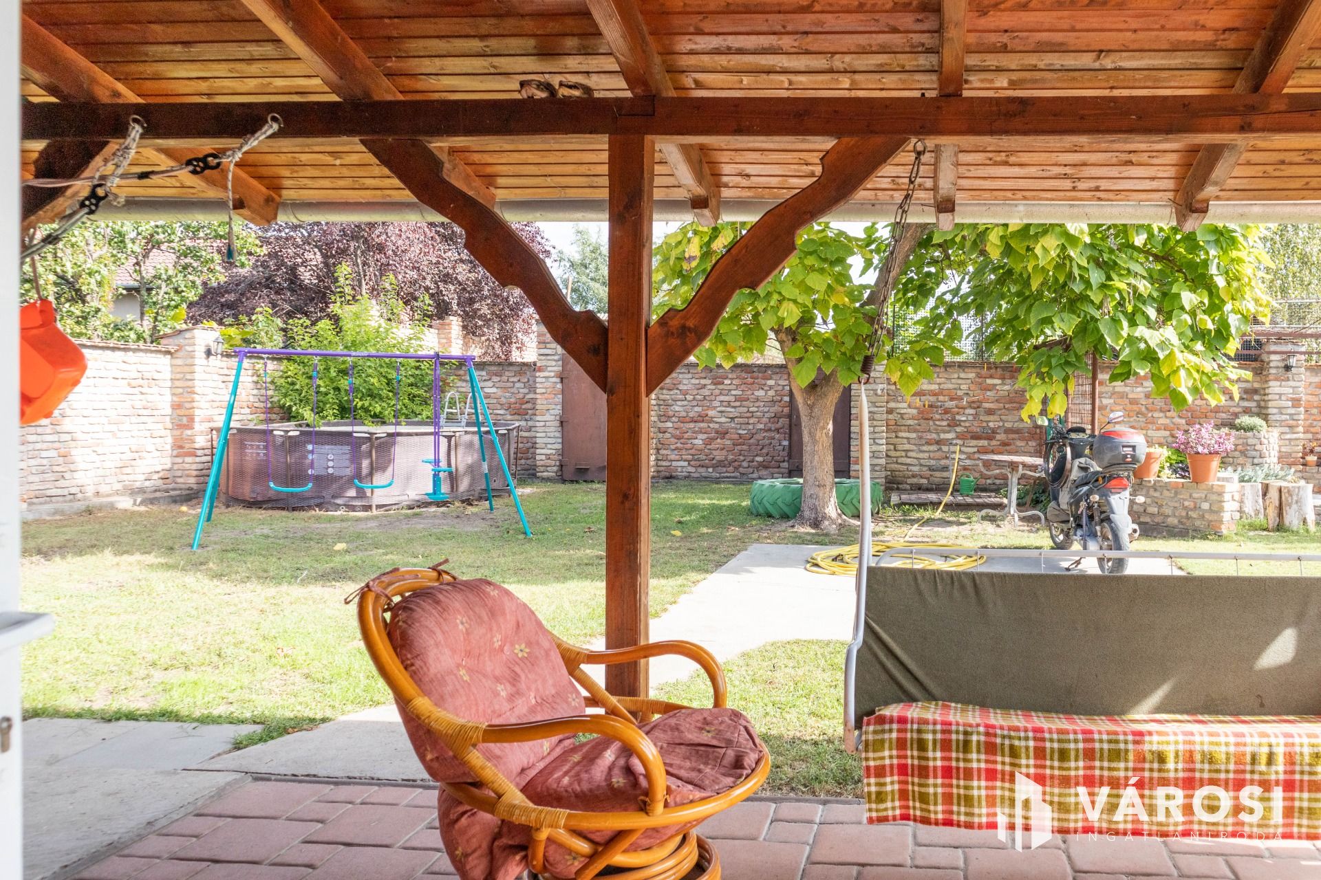 A földszinti 40 m2 es terasz tavasztól-öszig akár a család kinti nappalija is lehet. A térkővel burkolt udvaron gépjárműbeállási lehetőség, valamint garázs kialakításának opciója is adott.