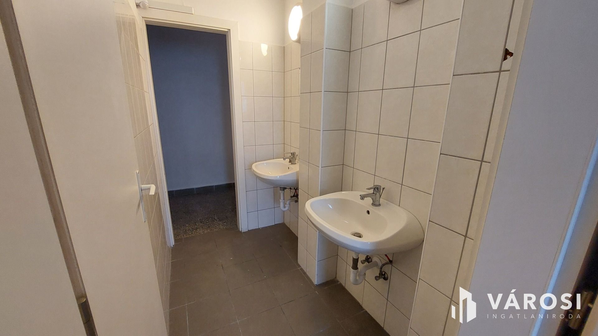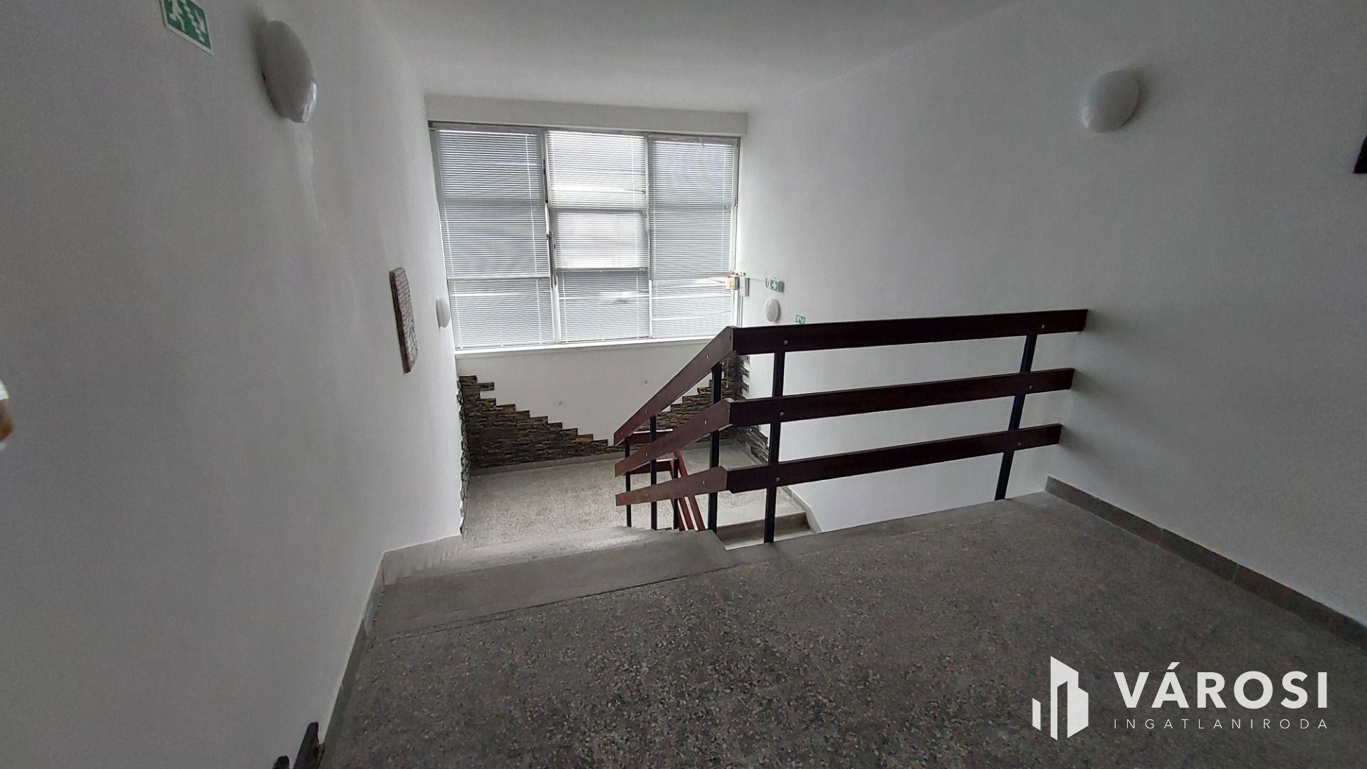A raktárhoz közvetlenül kapcsolódik az irodaépület, amelynek földszintjén önálló tárolók, üzlethelyiségek találhatók. Az első és második emeleten összesen 666 m2-nyi újszerű állapotban lévő iroda és a hozzá tartozó szociális helyiségek vannak. Az épület téglából készült és külső szigeteléssel rendelkezik. A fűtése radiátorokkal biztosított.
