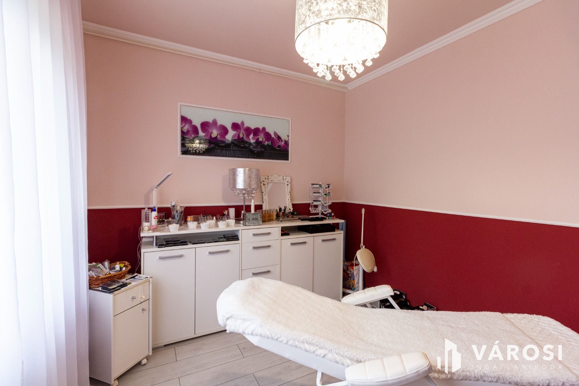 Az eladótér 50 nm-es, laminált burkolatú, a többi szociális helyiség hideg burkolatú.