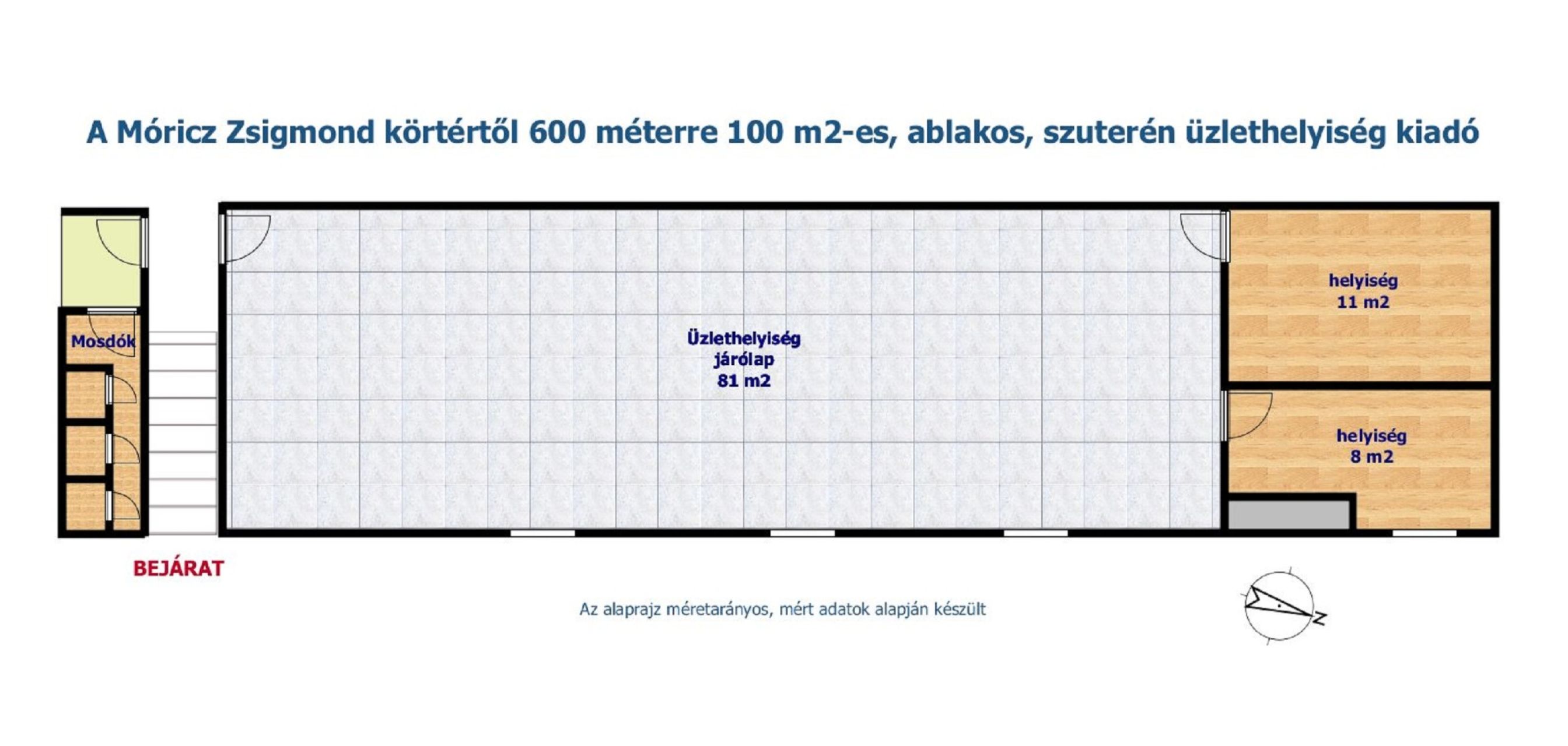 Móricz Zs. körtértől 600 m-re 100 m2-es szuterén üzlet kiadó