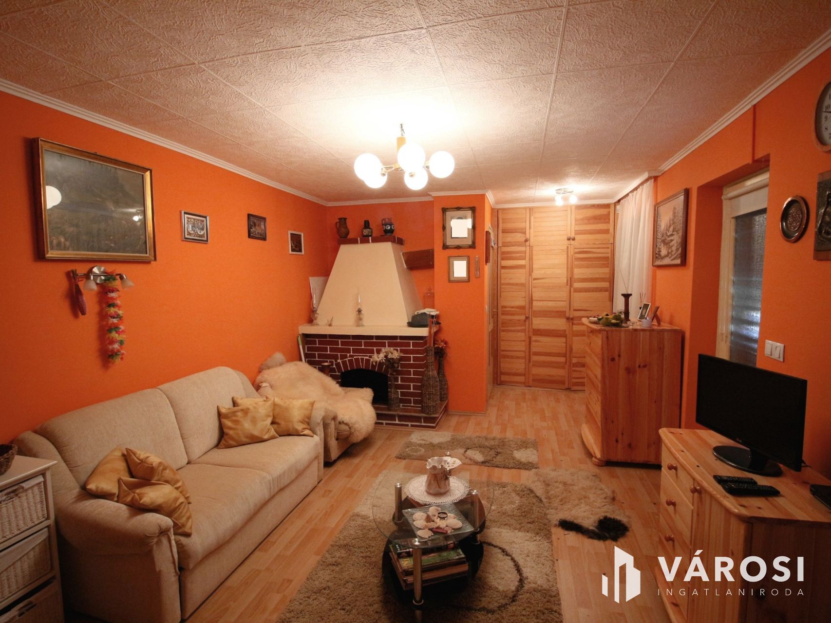 Az emeleti szinten egy kandalló szolgálja a fűtést és a kellemes hangulatot.