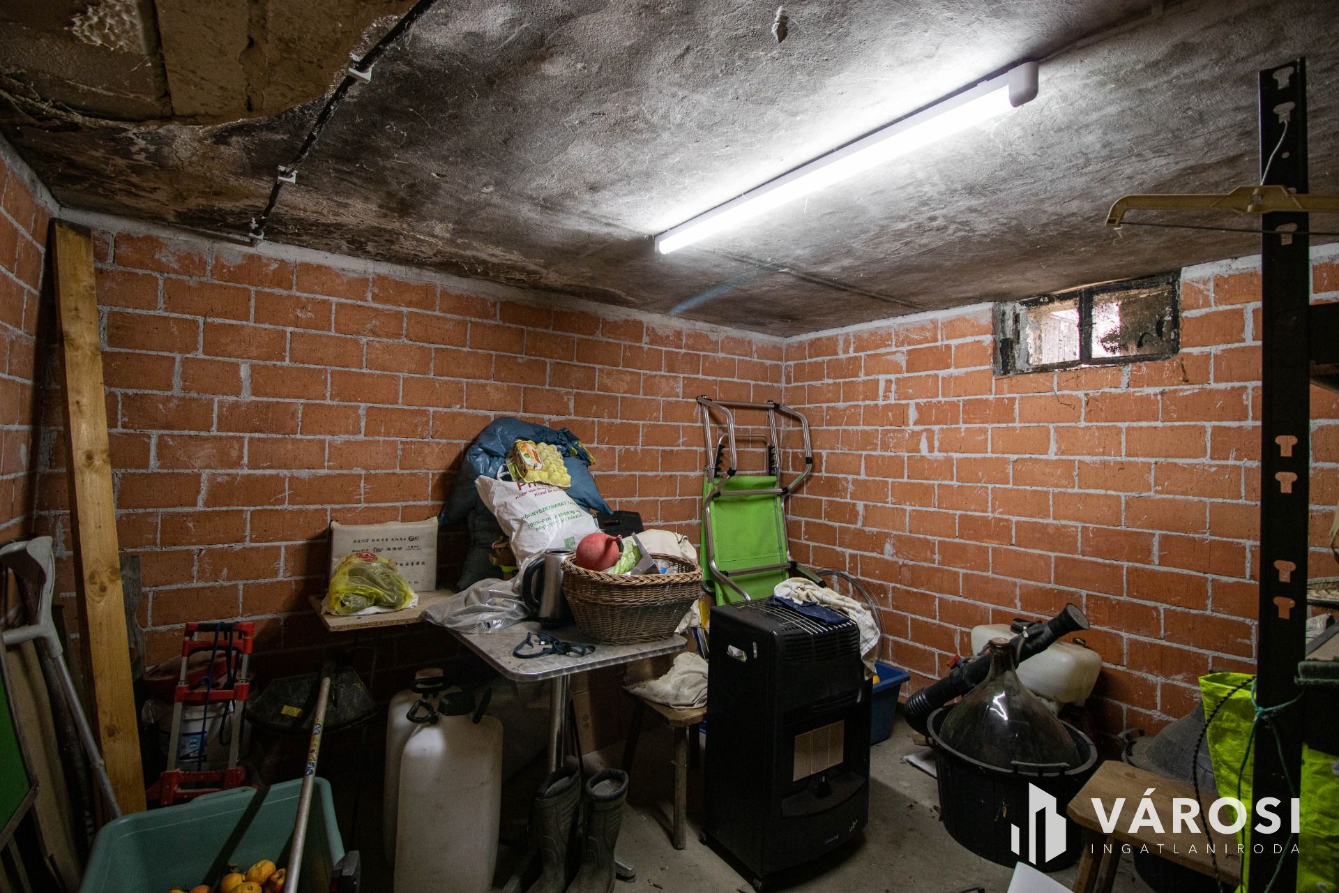 A ház egy része alatt piros téglás 11 m2-es pince található.