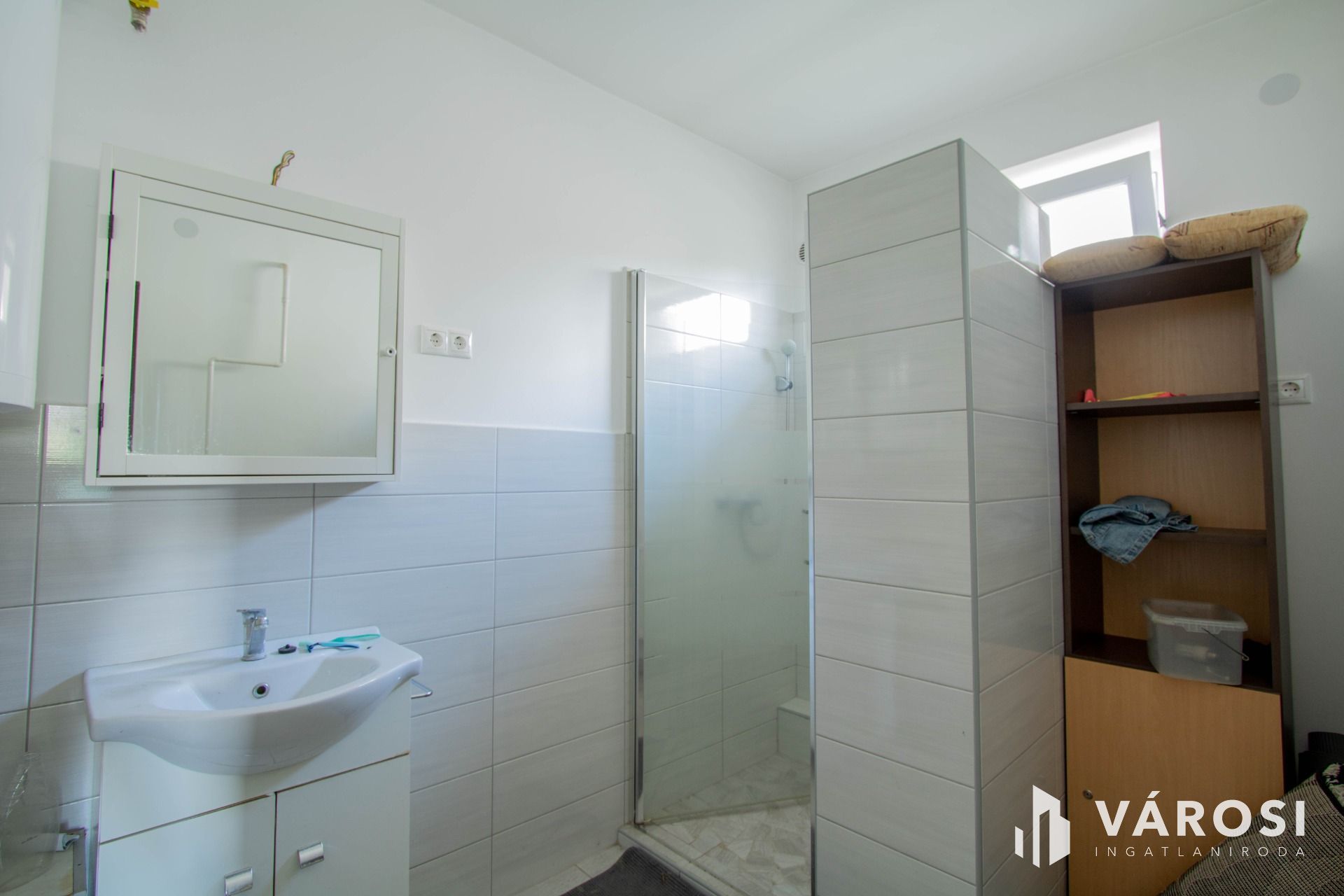 A ház tetőtér része be lett építve, itt kettő szoba és egy fürdőszoba + WC, meg egy kisebb nappali került kialakításra.
