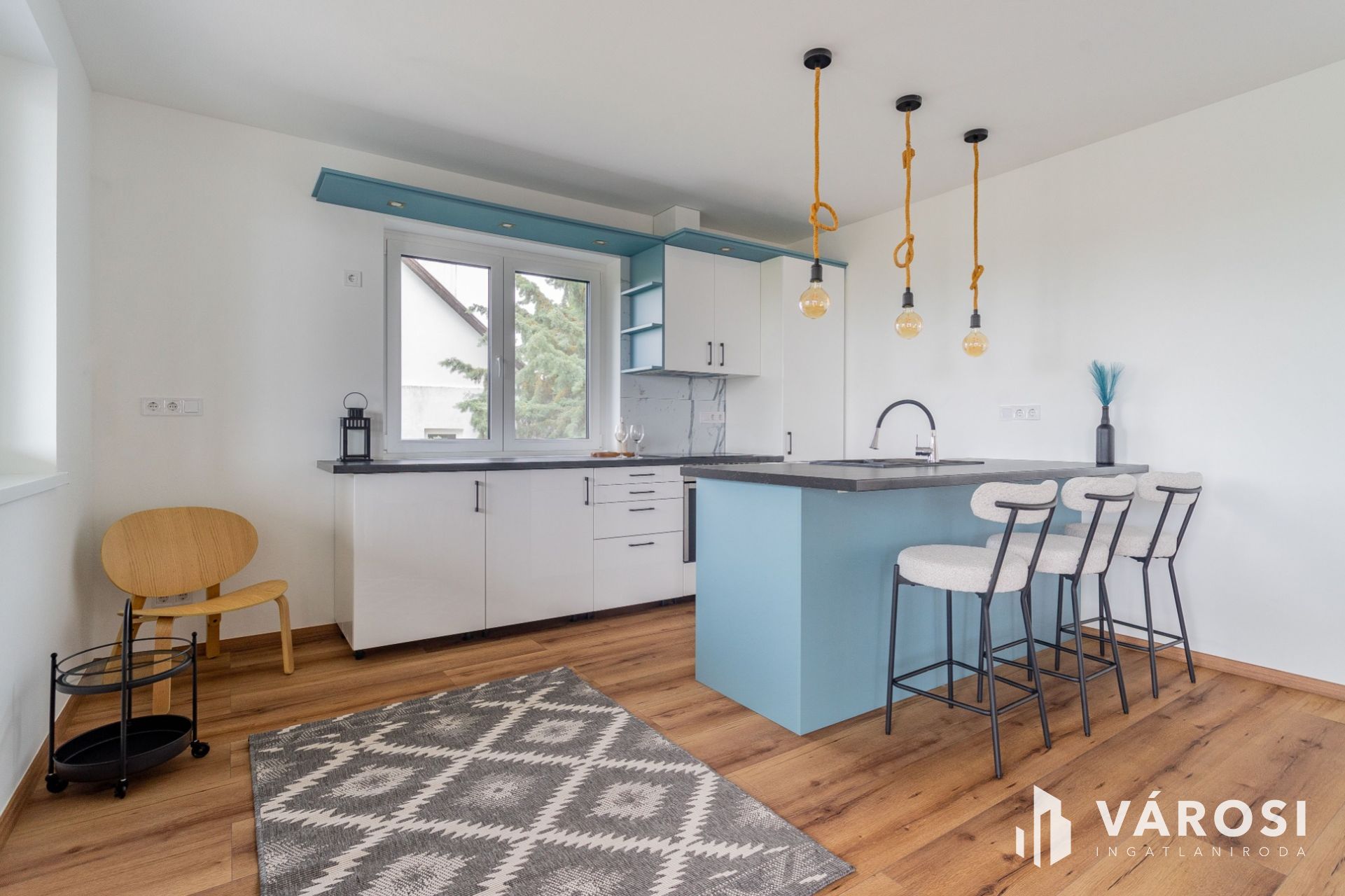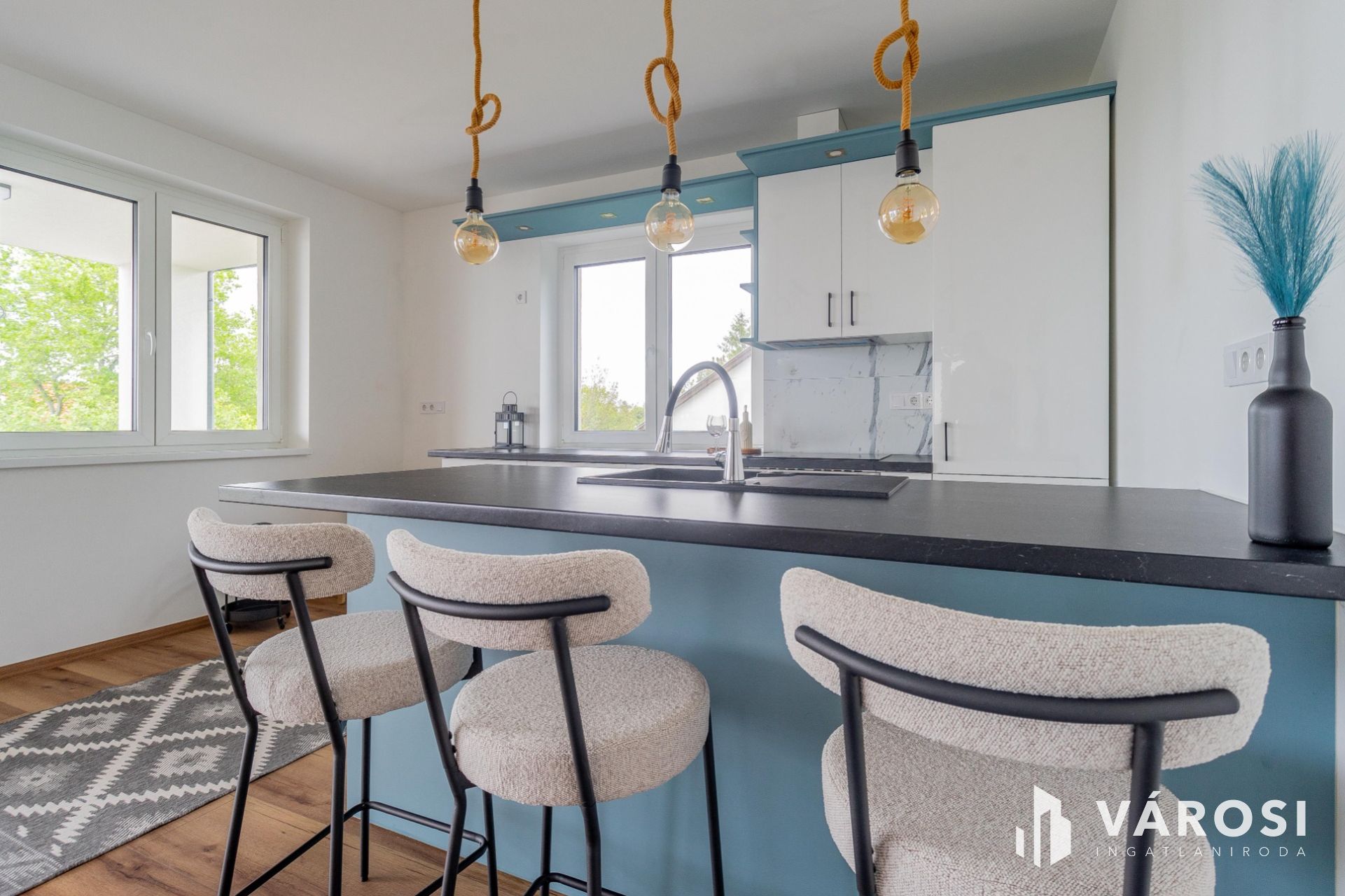 Ez a bruttó 144 m²-es ingatlan egy újépítésű 4 lakásos társasház első emeletén kulcsrakész állapotban várja új tulajdonosát. Az ingatlan a kilátó és a Hajózástörténeti Múzeum szomszédságában található, a Nyugati Szabadstrand 800 m-re, pár perces sétatávolságra van.