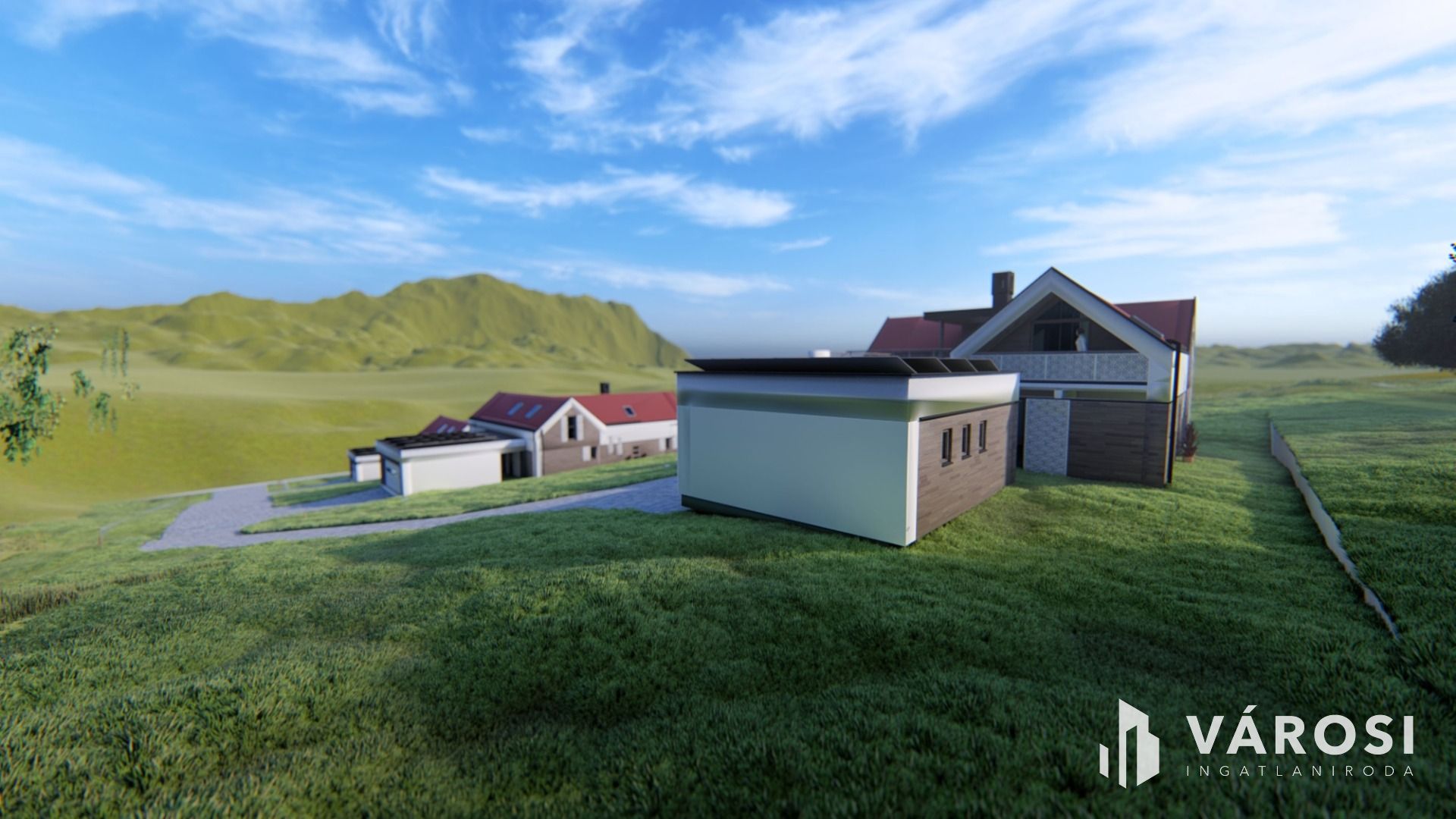 A telken szabadon elhelyezhető a ház. A képeken látható elhelyezés a látványterv része. A leendő tulajdonos elképzelései, tervei lesznek a meghatározók.