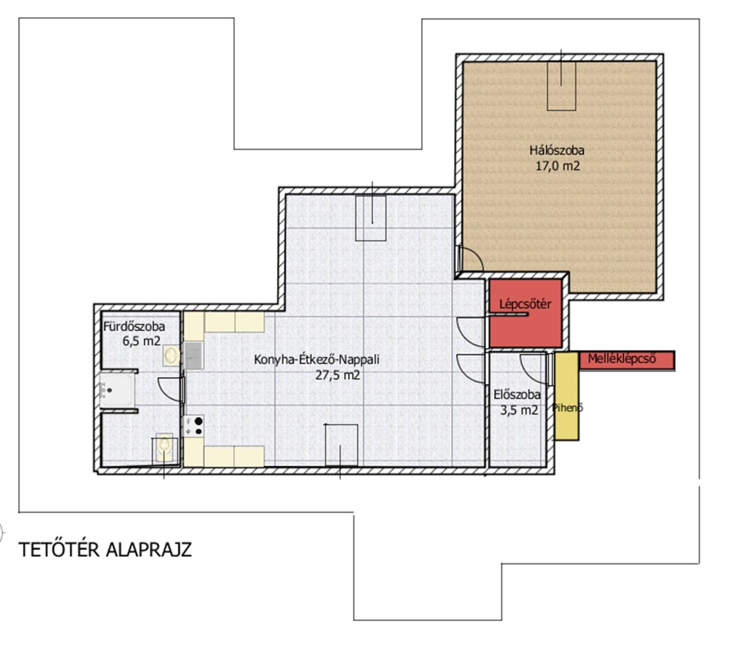 a tetőtéri lakrész saját nappalival, hálóval és fürdővel ideális privát szférát igénylő felnövő gyermekünknek.
